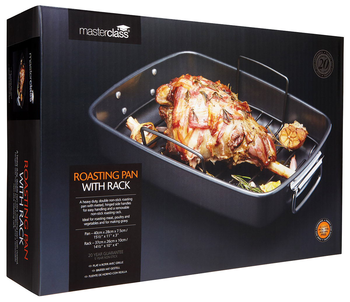 Pieczenie przysmaków takich jak mięso, drób czy warzywa będzie dużo łatwiejsze, jeśli wykonasz to z pomocą stworzonego specjalnie do tego naczynia. Takim jest proponowana przez nas brytfanna prostokątna z wyjmowanym rusztem z serii Master Class, od Kitchen Craft – marki, której zakup gwarantuje posiadanie solidnego sprzętu przez wiele lat. Co zyskujesz wyposażając swoją kuchnię w tę brytfannę? Pieczenie będzie łatwiejsze, a sama żywność przyrządzana w zdrowszy sposób. Fakt zastosowania w produkcie podwójnej powłoki nieprzywieralnej sprawia, że komfort użytkowania jest na bardzo wysoki. Sprzyjają mu również wygodne rączki. Utrzymanie w czystości nie nastręcza problemów, bowiem brytfannę można czyścić umieszczając ją po prostu w zmywarce.