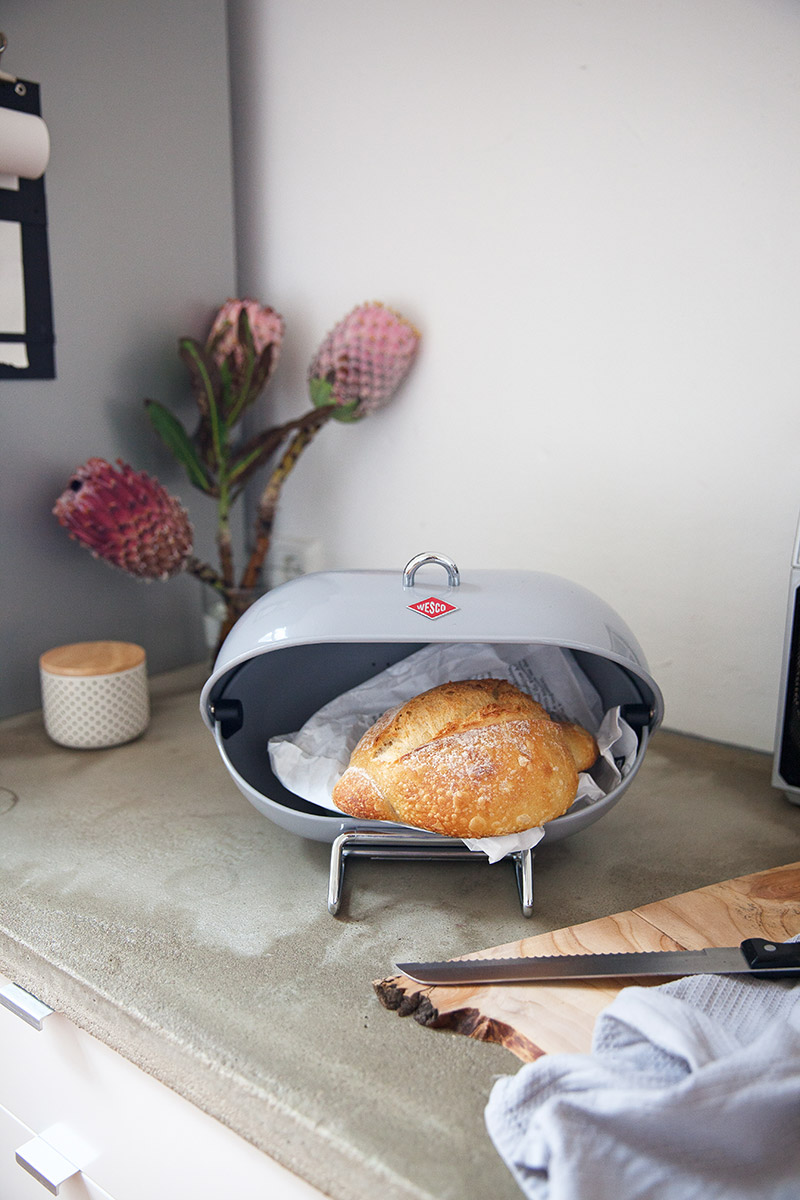 Chlebak turkusowy Single Breaadboy Wesco to młodszy brat kultowego, bardzo popularnego, większego chlebaka BreadBoy. Jego wymiary w zupełności wystarczą na przechowanie niewielkiego bochenka chleba. Dwie, zachodzące na siebie muszle, zapewniają higieniczne przechowywanie pieczywa. Nadany styl retro, świetnie będzie się prezentował w kuchniach stylizowanych na lata '40.