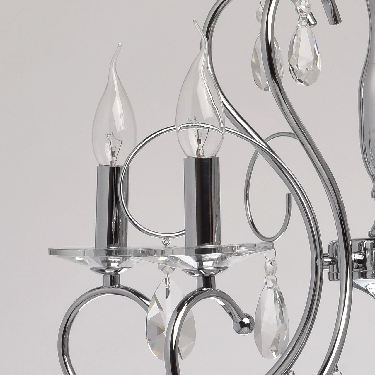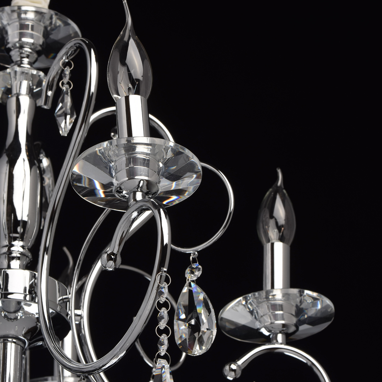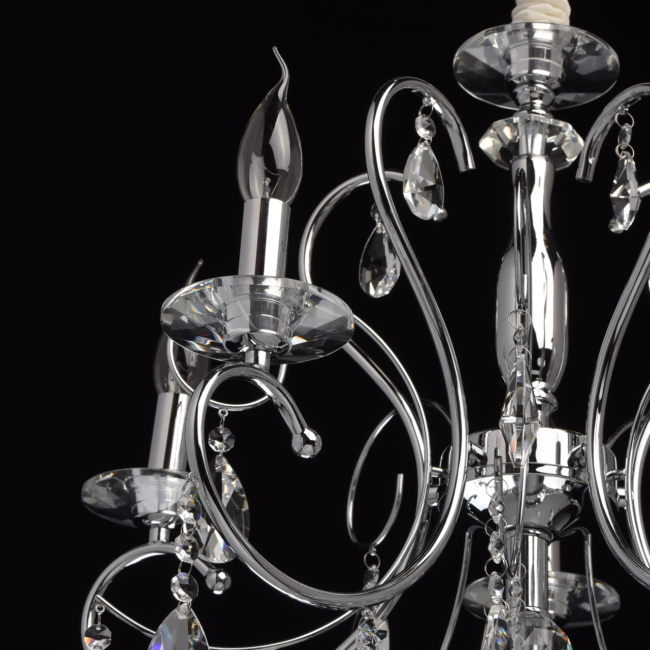 Projekt w klasycznym stylu. Tradycyjny kształt żarówek - świec zapewnia dużo oświetlenia. Przezroczyste wisiorki kryształowe tworzą magiczną grę światła, a żyrandol wyróżnia się wyjątkową elegancją dzięki cienkim, zakrzywionym rogom w kolorze chromu. Obecność kilku lamp w rodzinie Adele, pozwala na kompleksowe oświetlenie pokoju.