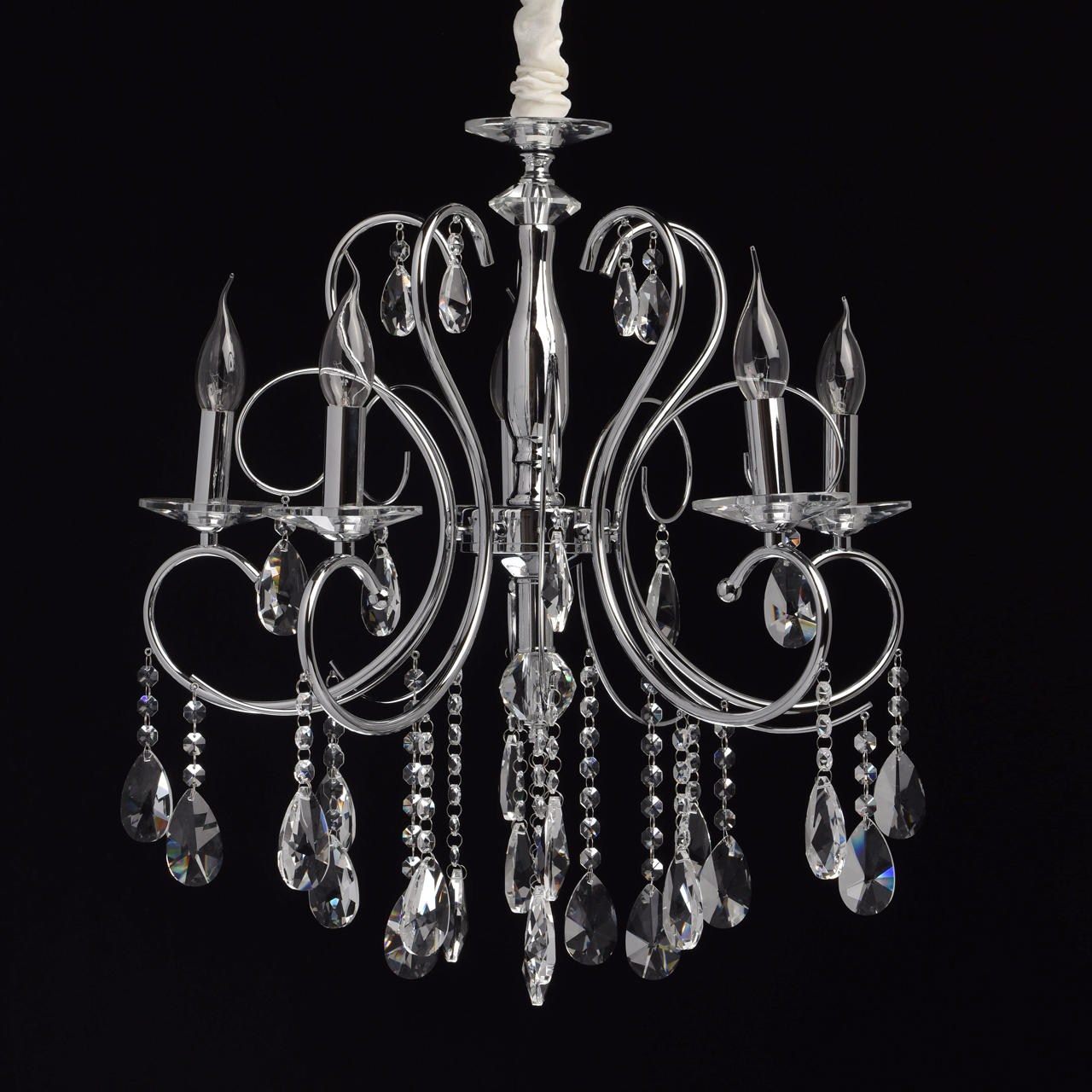 Chromowany żyrandol, regulowana wysokość, duże kryształy Adele MW-LIGHT Crystal. Doskonały żyrandol z kolekcji Adele. Trudno znaleźć bardziej elegancki i zgrabny w stylu nowoczesnej klasyki. Zakrzywione ramiona wyglądają jeszcze bardziej wyrafinowane, dzięki płaskim gniazdom z przezroczystego kryształu. Źródła światła w postaci świec, łączą się z nimi w najlepszy możliwy sposób. Ale lampa nie byłaby tak luksusowa, gdyby nie wielopłaszczyznowa dekoracja świetlna - kryształowe wisiorki obramowujące podstawę i ramiona, podkreślając każdy szczegół i tworząc olśniewającą grę światła.