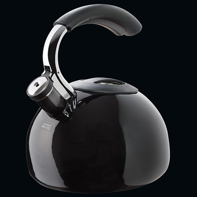 Stalowy, czarny, emaliowany czajnik z gwizdkiem. Przystosowany do wszystkich rodzajów kuchenek.