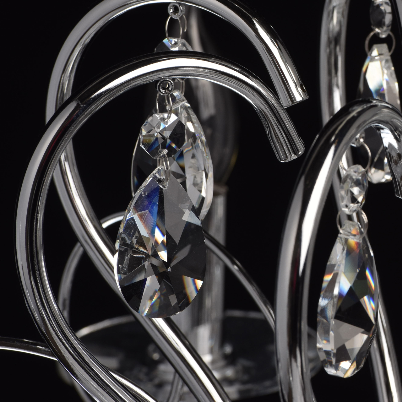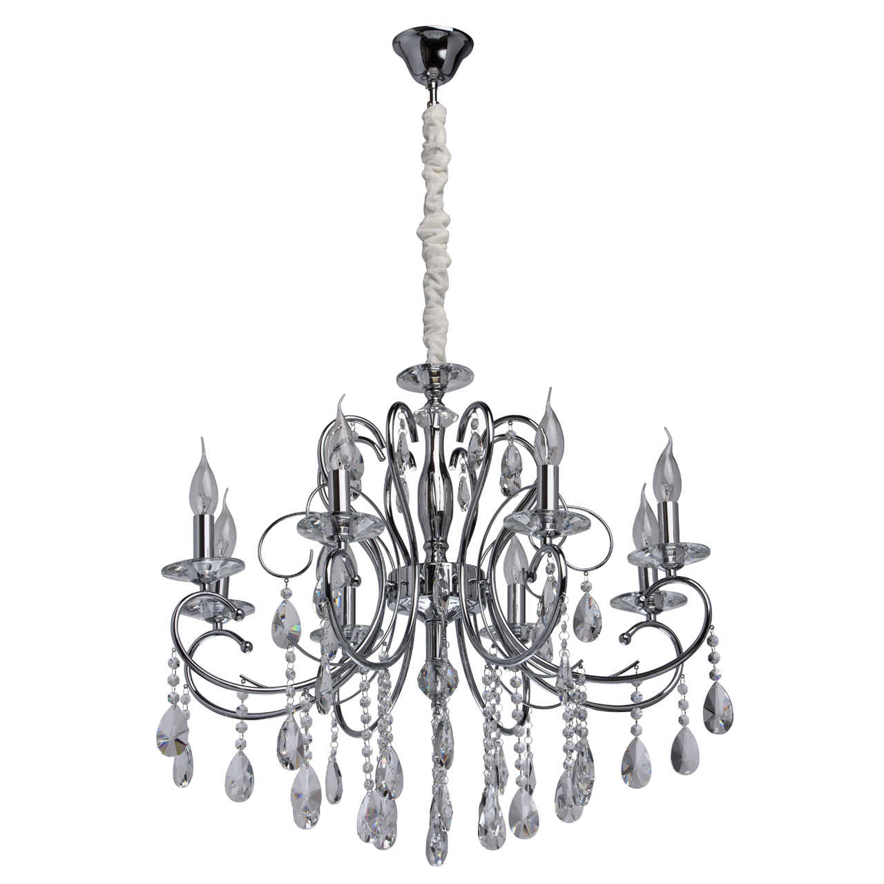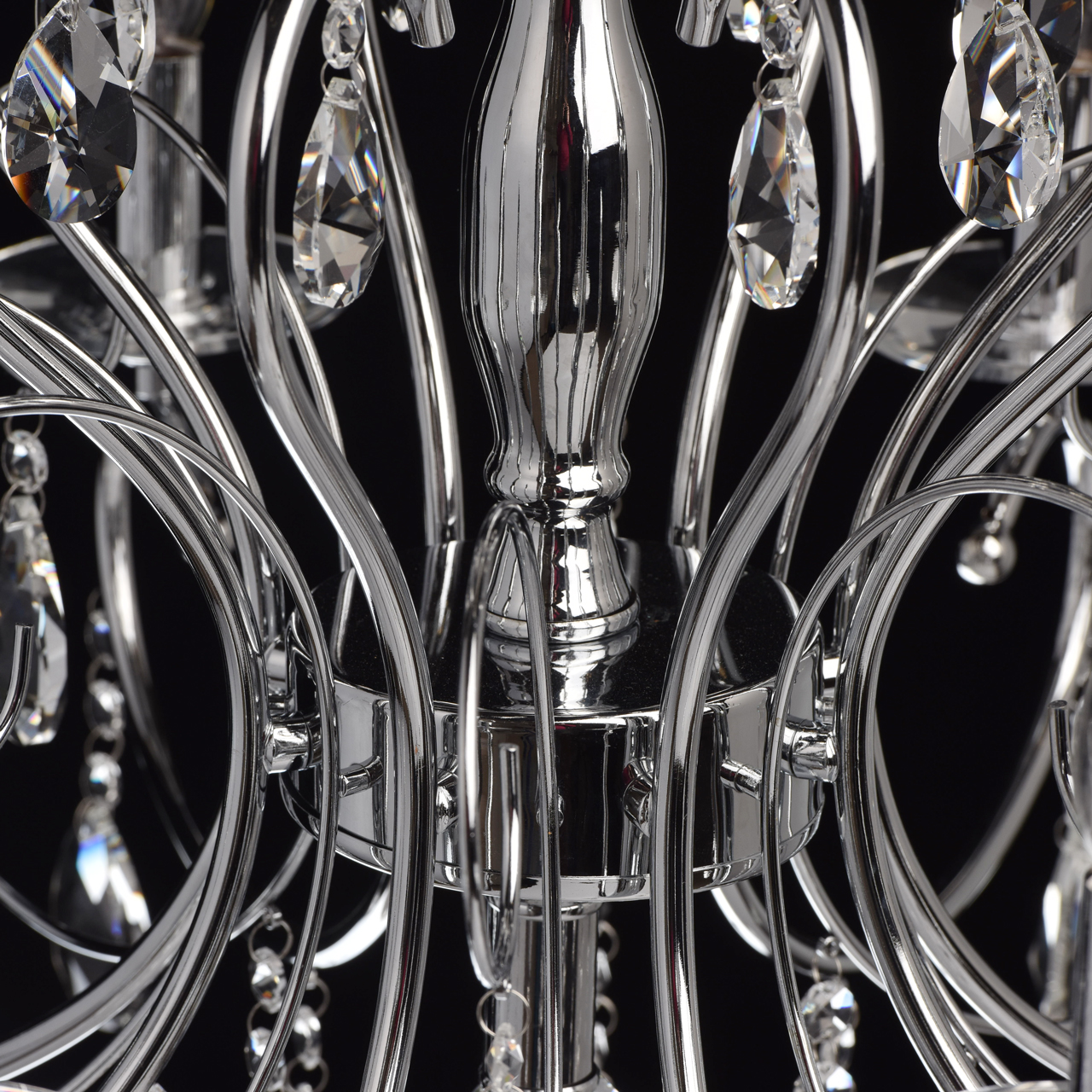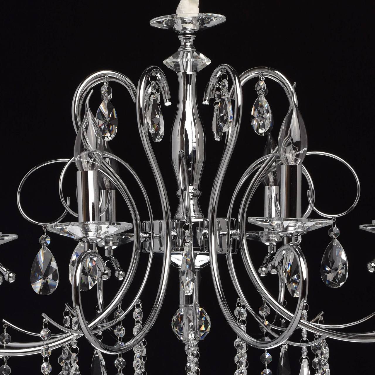 Tradycyjny kształt świecy zapewnia wysokie parametry oświetlenia. Przezroczyste wisiorki kryształowe tworzą magiczną grę światła, a żyrandol wyróżnia się wyjątkową elegancją dzięki cienkim, zakrzywionym rogom w kolorze chromu. Obecność kilku lamp w rodzinie pozwala na kompleksowe oświetlenie pokoju. Lampa premium w przystępnych cenach.