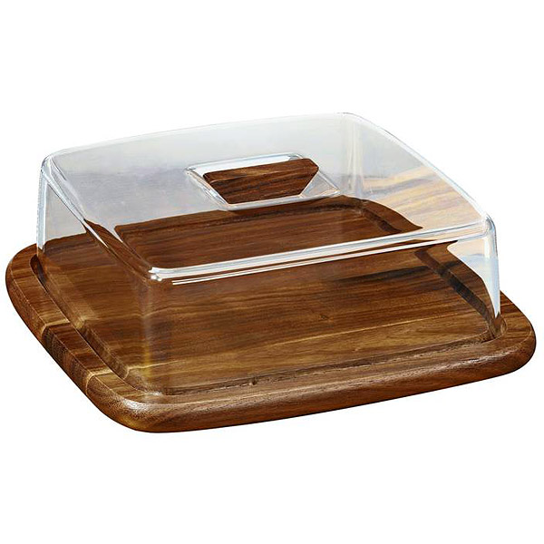 Kwadratowa deska to oryginalny i efektowny sposób na serwowanie serów. Przed wysychaniem zabezpieczy je przezroczysta akrylowa pokrywa, wyposażona w uchwyt do wygodnego podnoszenia. Deska wykonana jest z drewna akacjowego – bardzo mocnego i trwałego, a jednocześnie dekoracyjnego – jego ciemny kolor i wyraźnie widoczne słoje sprawiają, że deska prezentuje się bardzo efektownie.