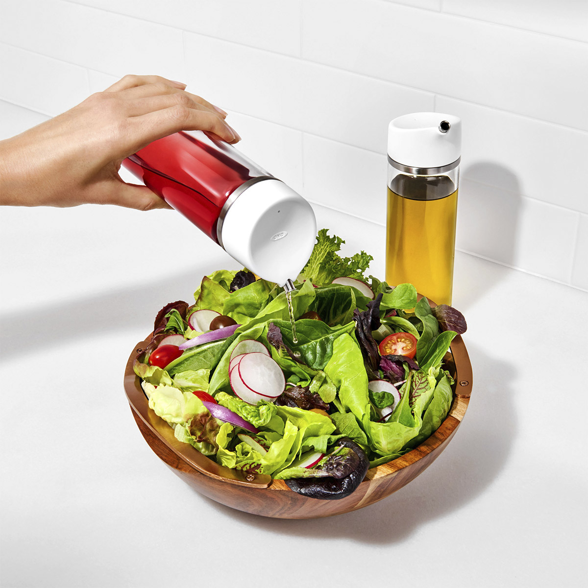 Dozownik do oleju, oliwy, octu balsamicznego, sosu sojowego, dressingów OXO Good Grips. Precyzyjny, szklany dozownik do serwowania płynnych przypraw i dodatków do potraw. Opatentowana konstrukcja zapewniająca precyzyjne dozowanie bez bałaganu. Pożegnaj się z przelewającym się olejem dzięki naszemu dozownikowi OXO z serii Good Grips. Innowacyjna konstrukcja pozwala kontrolować przepływ oleju poprzez zmianę kąta, pod którym trzymamy dozownik. Przechyl nieco dozownik, aby dokładnie skropić potrawę, lub więcej, aby nalać równomiernie. Zagięta krawędź dziobka zapobiega kapaniu, utrzymując blat w czystości podczas gotowania. Szczelna uszczelka w pokrywie zapobiega wyciekaniu oleju na dłonie - lub dozownik. Wytrzymały, szklany korpus i akcenty ze stali nierdzewnej są idealne w użytkowaniu w kuchni lub na stole w jadalni. Jest również idealny do przechowywania i serwowania octu i sosu sojowego. Pokrywę można zdjąć w celu dokładnego czyszczenia, a wszystkie części nie zawierają BPA i można je myć w zmywarce. Aby uzyskać najlepsze rezultaty, używaj rzadkich przypraw, takich jak olej, ocet i sos sojowy.