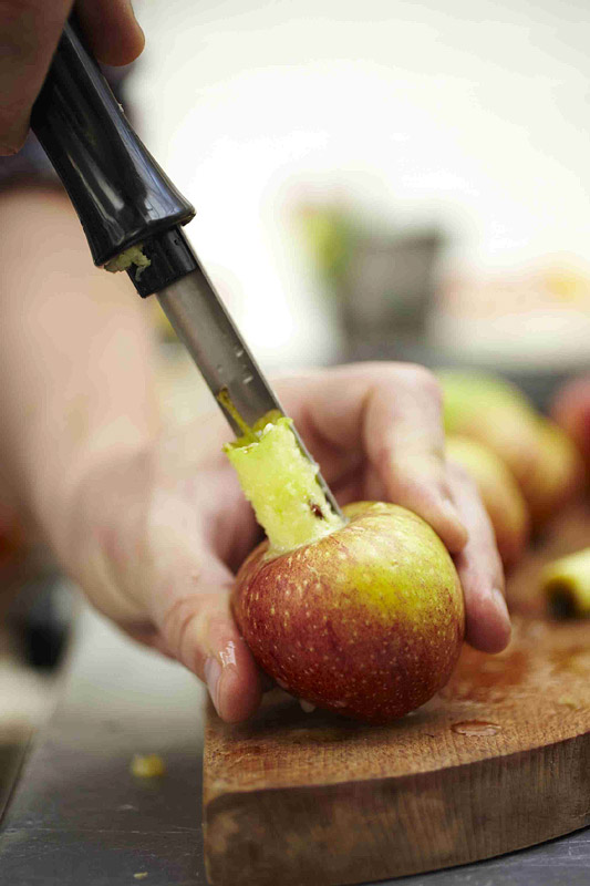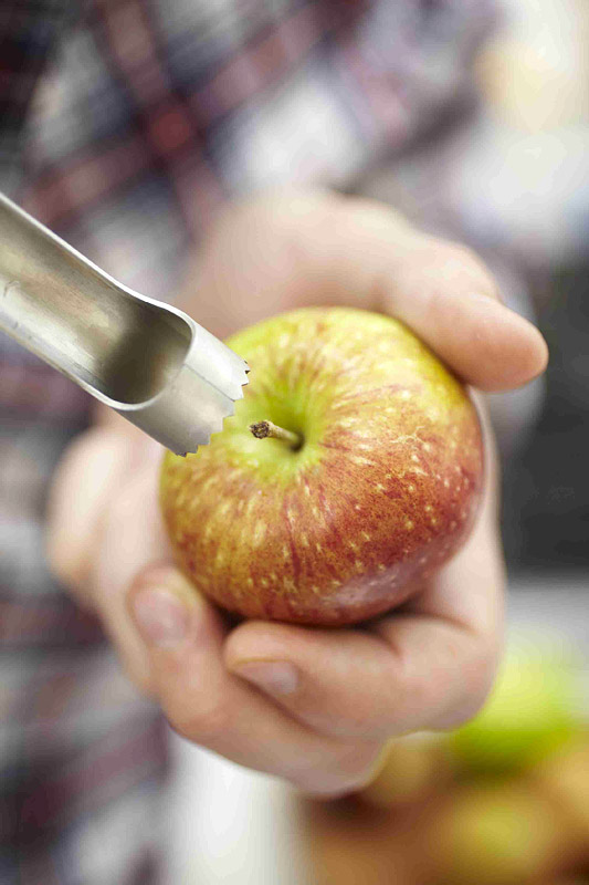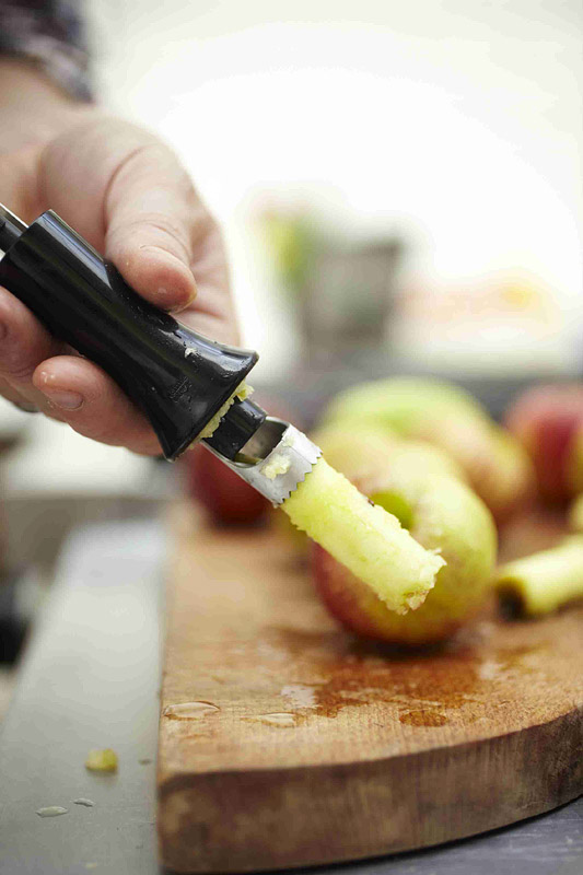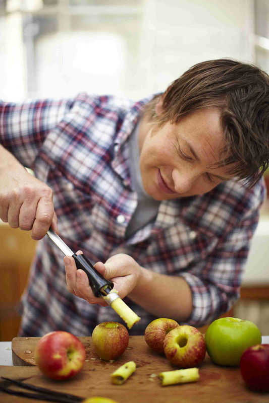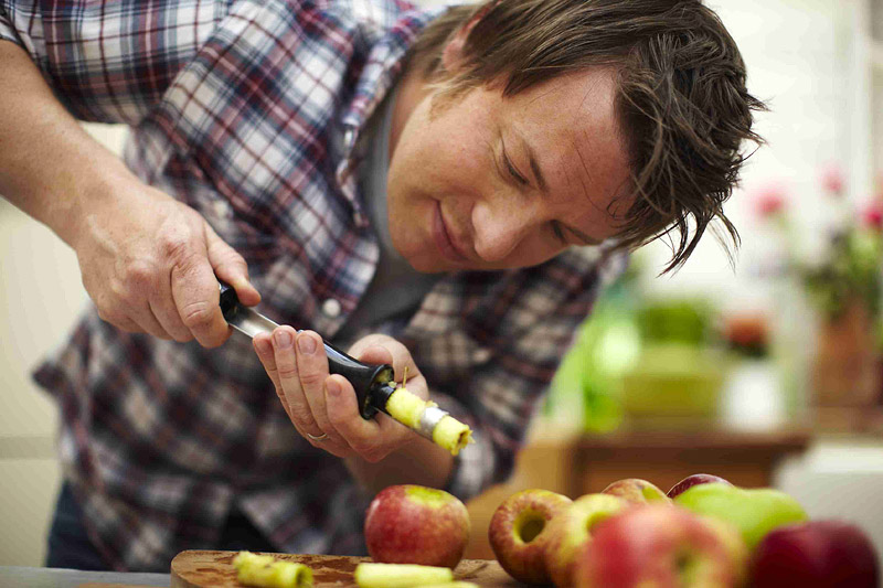 Drylownica do jabłek sygnowana przez Jamie Olivera, znakomitego kucharza, mistrza sztuki kulinarnej, autora wielu książek o gotowaniu i programów telewizyjnych. Za jej pomocą drylowanie jabłek nabierze nowego wymiaru. Teraz łatwo i dokładnie wytniesz środek jabłka, a po jego wyciągnięciu, za pomocą specjalnego tłokowego mechanizmu, szybko usuniesz wycięty ogryzek z jej wnętrza. Ergonomiczny kształt rękojeści to komfort użytkowania zarówno przez osoby prawo- jak i leworęczne.