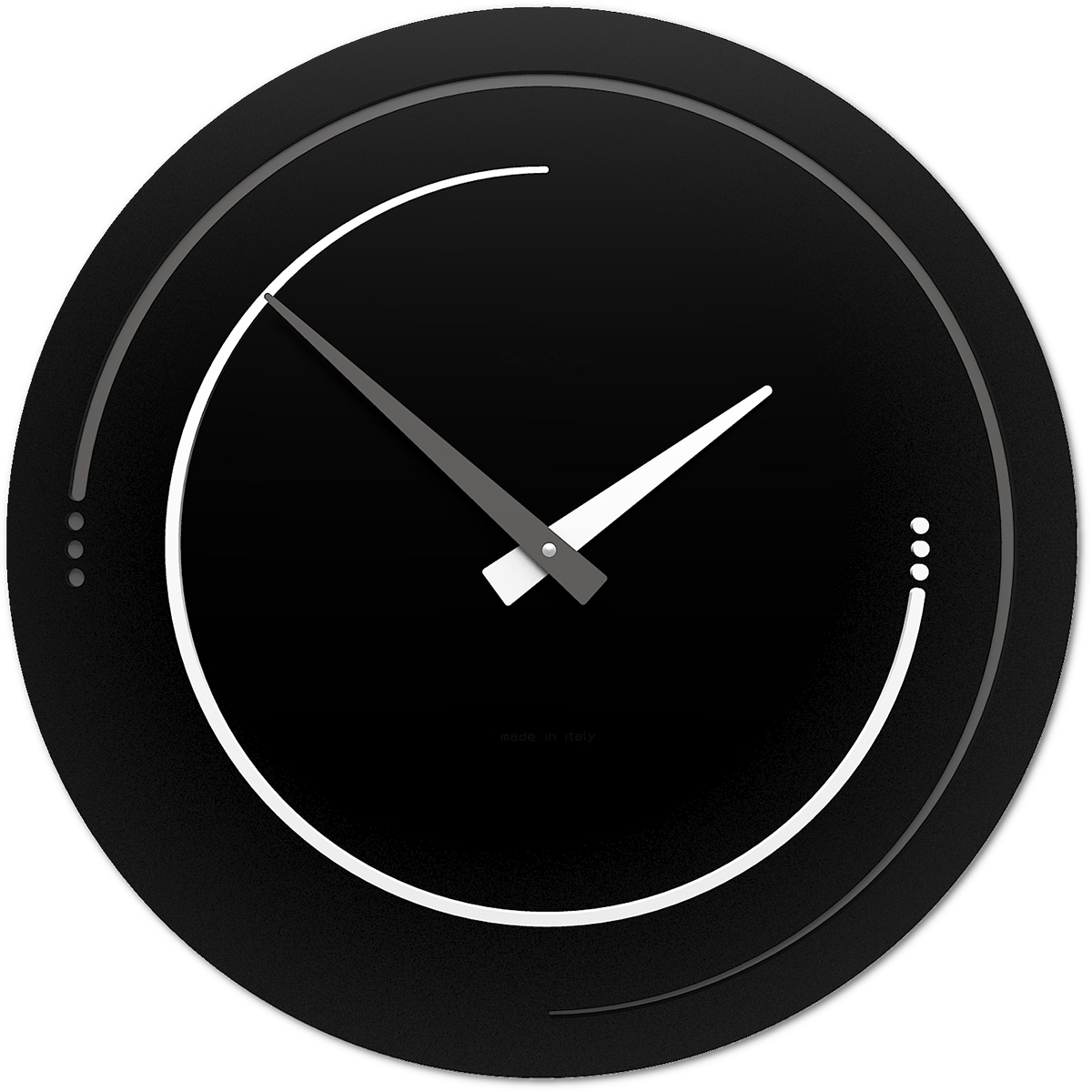 Duży zegar ścienny Sonar 46 cm CalleaDesign czarny. Na tarczy zegara brak jest oznakowań godzin, co nie przeszkadza w odczytaniu prawidłowej godziny. Wskazówki są na tyle duże i czytelne, że odczytanie czasu jest intuicyjne i może być z dużej odległości. Duża średnica zegara - 46 cm sprawia, że zegar potrzebuje dużo wolnej przestrzeni dookoła, powinien być umieszczony w dużym pomieszczeniu na dużej, reprezentatywnej ścianie. Delikatne, zaokrąglone linie dookoła wskazówek, zarówno wypukłe jak i wklęsłe, podkreślają nowoczesny styl zegara.