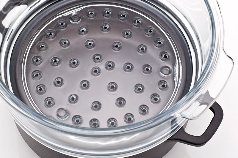 Jeśli gotowanie będzie krótkie wystarczy napełnić wodą 1/3 naczynia żeliwnego. Jeśli potrawa wymaga dłuższego gotowania wypełniamy wodą 2/3 naczynia. Po zagotowaniu wody zmniejszamy dopływ energii, aż do momentu stałego utrzymania wrzenia. Następnie należy umieścić na górze naczynie szklane z przygotowanymi składnikami. Składniki, które wymagają dłuższego gotowania kładziemy na dnie szklanego naczynia lub gotujemy jako pierwsze dokładając następnie te, które wymagają krótszego czasu przygotowania. Nie należy ściągać bez potrzeby pokrywy podczas gotowania w celu zminimalizowania ucieczki pary. W razie niedostatecznej ilości wody w części żeliwnej należy ja uzupełnić. W celu wzbogacenia smaku potrawy zaleca się dodanie przypraw, ziół, mięty, imbiru lub grzybów, kawałka pomarańczy, cytryny, drobno skrojony seler, koper czy pietruszka nie tylko do potrawy, ale także do wody w naczyniu żeliwnym.
