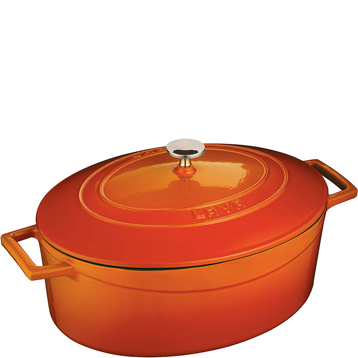 Gęsiarka żeliwna marki Lava Cooking to owalny garnek przeznaczony szczególnie do przyrządzania dań dla kilku osób. Można ją stosować zarówno w piekarnikach jak i na kuchenkach gazowych, ceramicznych, płytach grzewczych i kuchenkach ceramicznych. Jeżeli masz odpowiednie warunki to można w niej także gotować na otwartym ogniu. Uwaga: nie należy stosować naczyń żeliwnych w kuchenkach mikrofalowych.