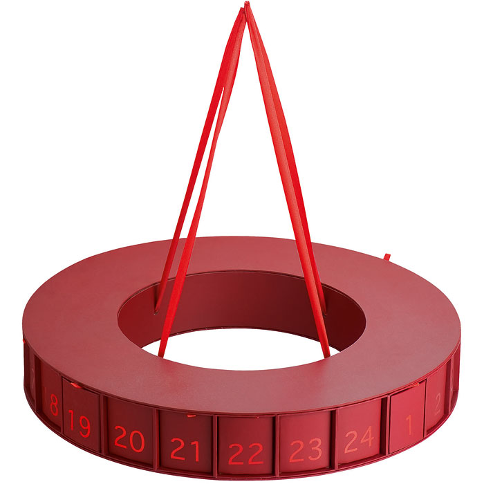 Kartonowy kalendarz adwentowy Ring marki Philippi to zestaw niespodzianek stworzonych dla ciekawego świata dziecka. Kalendarz w okrągłym pudełku został podzielony na 24 mniejsze komory, które można wysuwać jak szufladki i odkrywać, co pod danym numerem, czyli kolejnym dniem Adwentu, ukrył pomysłowy rodzic. Kalendarz bardzo uprzyjemnia dzieciom czas oczekiwania na wyśnione Święta Bożego Narodzenia, umożliwiając jednocześnie osłodzenie sobie tego czasu poprzez drobne smakołyki, które najczęściej są chowane w taki sposób. Kalendarz, dzięki dołączonym wstążeczką można zawiesić.
