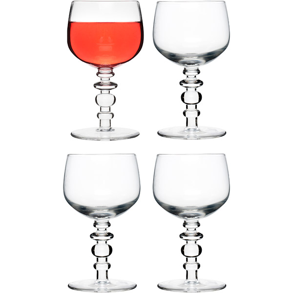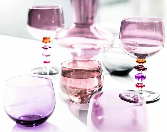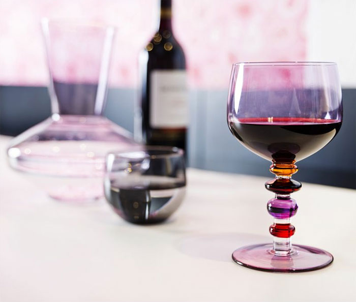 Kieliszki do wina marki Sagaform, których wygląd został zainspirowany kamieniami szlachetnymi, szklanymi koralikami i kolorową biżuterią. Kieliszki wykonane są ręcznie z barwionego szkła. Nóżka posiada kolorowe zgrubienia, które przypominają duże koraliki. Kieliszki to niepowtarzalny pomysł na prezent.