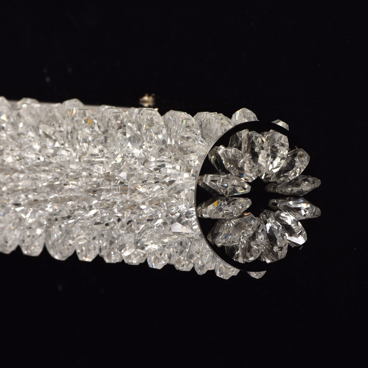 Kinkiet kryształowy LED CHIARO Crystal. Bogato ozdobiony kryształami, który może służyć w pomieszczeniach oświetlanych przez żyrandole z tej samej serii. Delikatne piękno kryształowego walca i urok światła LED w pomieszczeniach takich jak: salon, poczekalnia, duża sala czy hol, sypialnia, a nawet recepcja. Pasuje do pomieszczeń odznaczających się nowoczesnym wystrojem i nastrojowym klimatem.