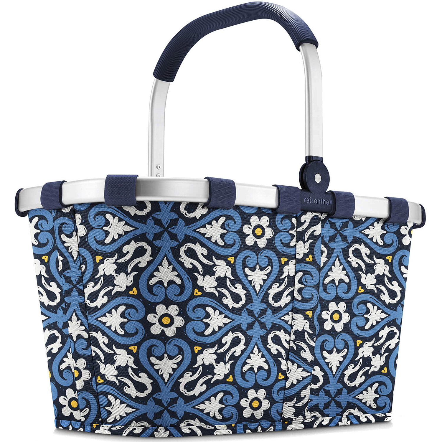 Kultowy koszyk na zakupy niemieckiej marki Reisenthel z kolekcji Carrybag dostępny w sprzedaży od 2003 roku. Oryginalny i prawdziwy klasyk znany na całym świecie, który musisz mieć. Nieważne czy idziesz na zakupy, do parku na piknik czy do biura – po prostu zabierz go ze sobą. Zbudowany jest z solidnej, aluminiowej ramy, ozdobiony unikalnymi wydrukami. Wewnątrz koszyka znajduje się kieszonka, w której przechowasz np. portfel. W twardej podstawie umieszczone zostały stopki, które ułatwiają postawienie kosza na nawet brudnej powierzchni, bez ryzyka zabrudzenia. Interesujący wygląd z przyciągającą kolorystyką i zastosowanym, trwałym, odpornym na uszkodzenia poliestrem sprawiają, że jego użytkowanie sprawiało Ci będzie przyjemność przez długi czas.