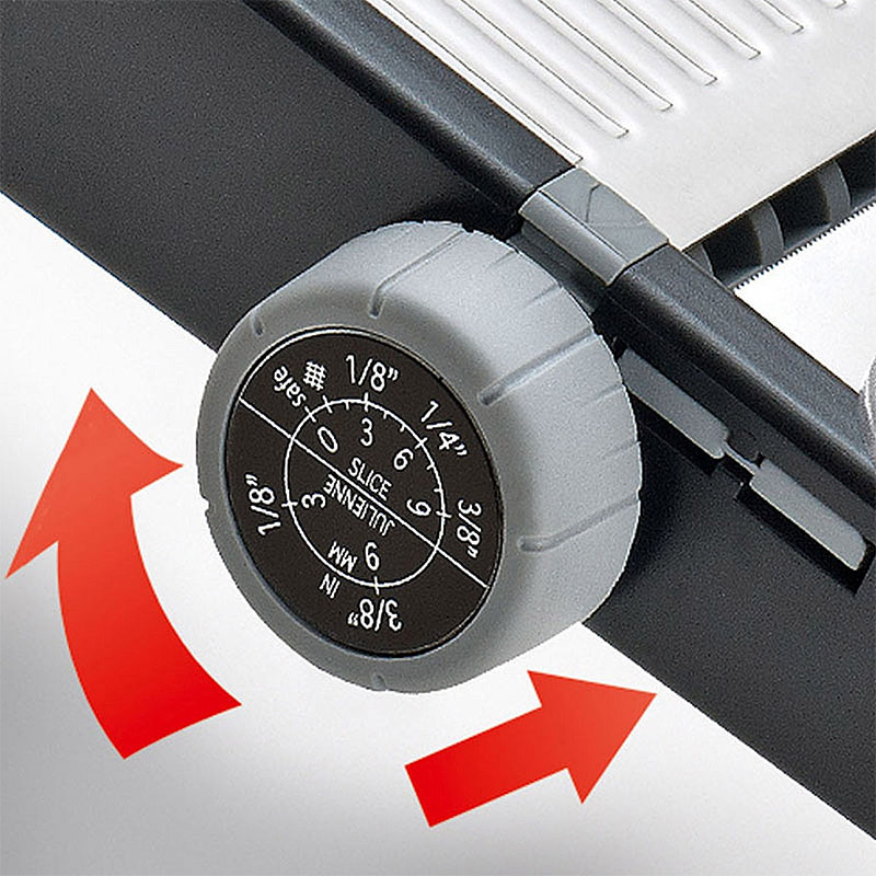 Profesjonalna krajalnica do warzyw Mandoline Veggie Pro szwajcarskiej marki Moha. Dzięki niej szybko i sprawnie pokroisz warzywa i owoce do sałatki, zupy, sosu lub na frytki. W kilka chwil przygotujesz warzywa do zupy, a frytki będą równiejsze niż te zwykle przygotowywane w tradycyjny sposób. Ten model krajalnicy można spotkać w restauracyjnych kuchniach na całym świecie. Szeroka stopa ze stali nierdzewnej sprawia, że każdy produkt łatwo prześlizguje się przez niezwykle ostre ostrze wykonane z najwyższej jakości stali nierdzewnej. Pozwala to ciąć bardzo precyzyjnie, a przy tym łatwo, szybko i bezpiecznie dzięki specjalnemu uchwytowi z ochroną na palce. Mandolina została wyposażona w zintegrowane ostrze, co zwiększa bezpieczeństwo jej użytkowania. Na boku urządzenia znajduje się pokrętło, które pozwala wybrać kształt oraz grubość krojonych plastrów. Krajalnica ma cztery funkcje krojenia: