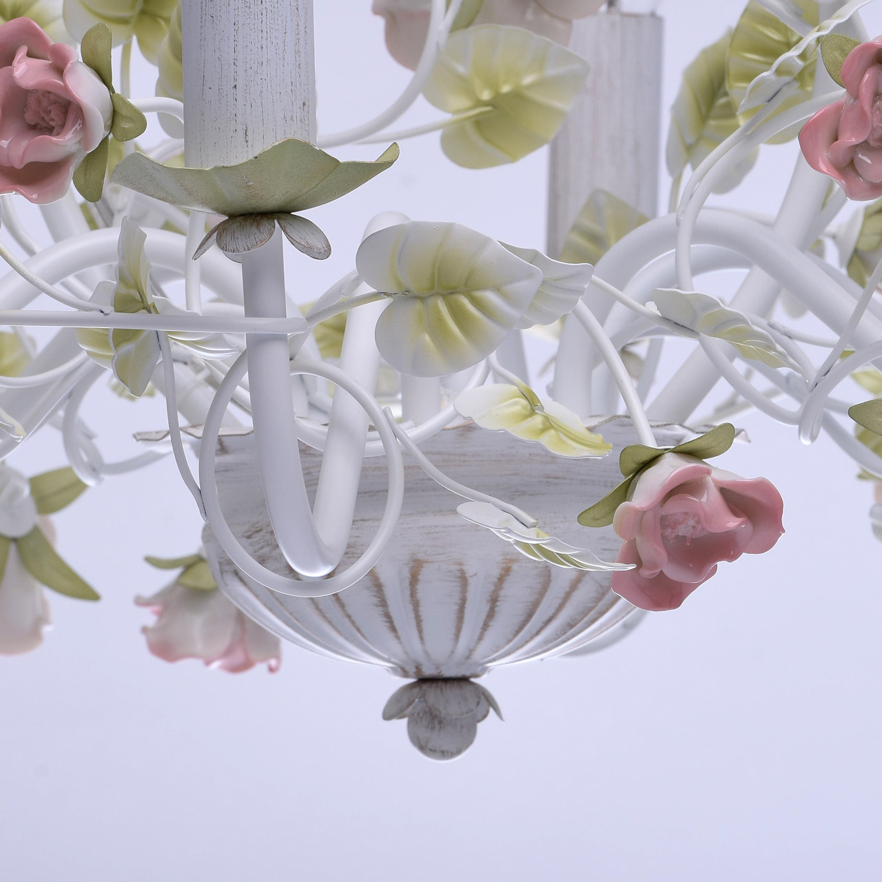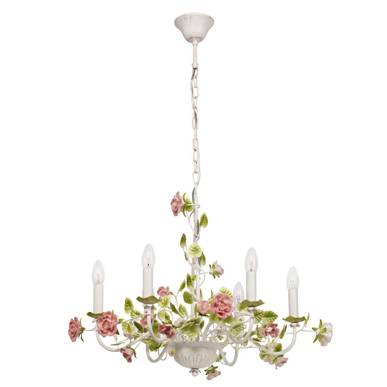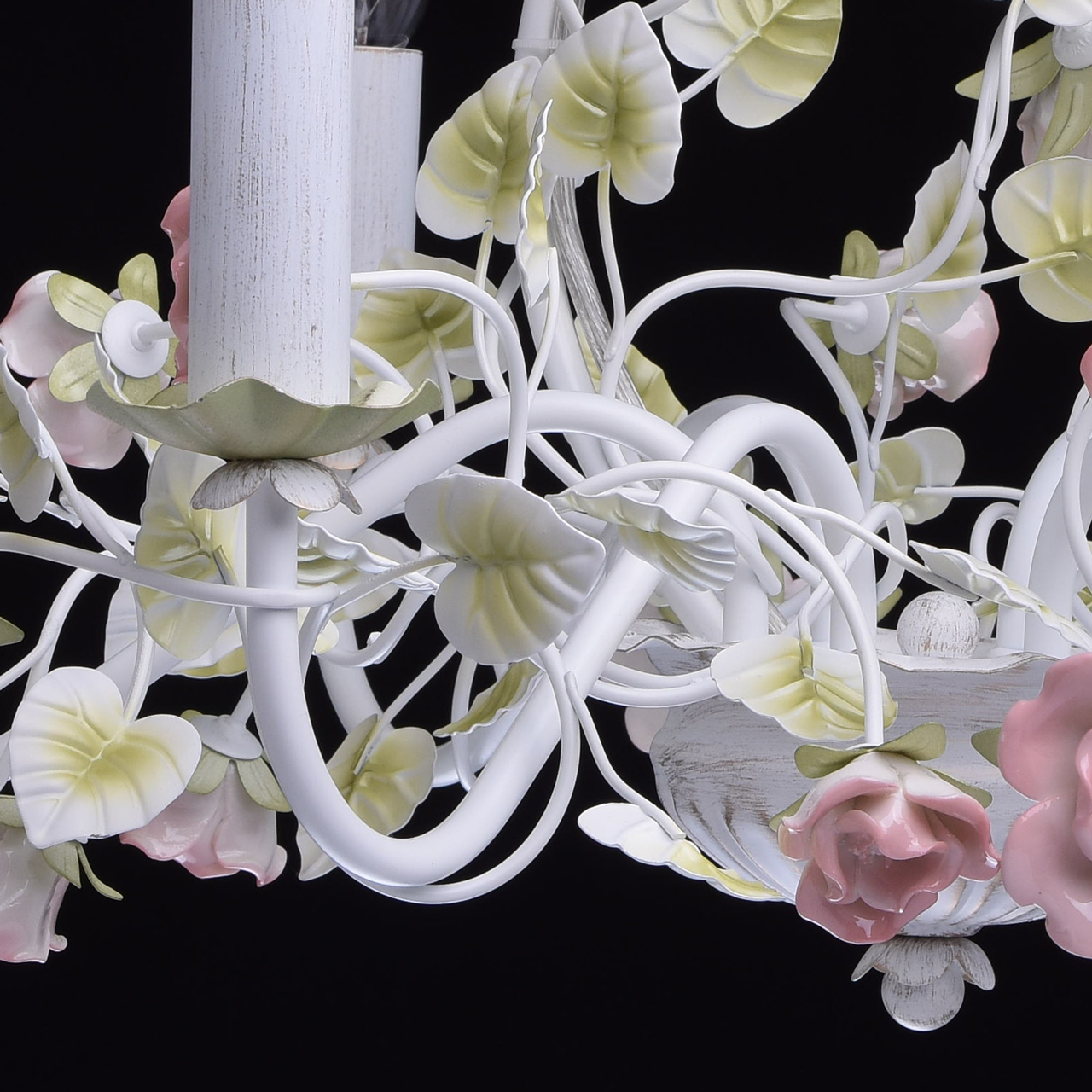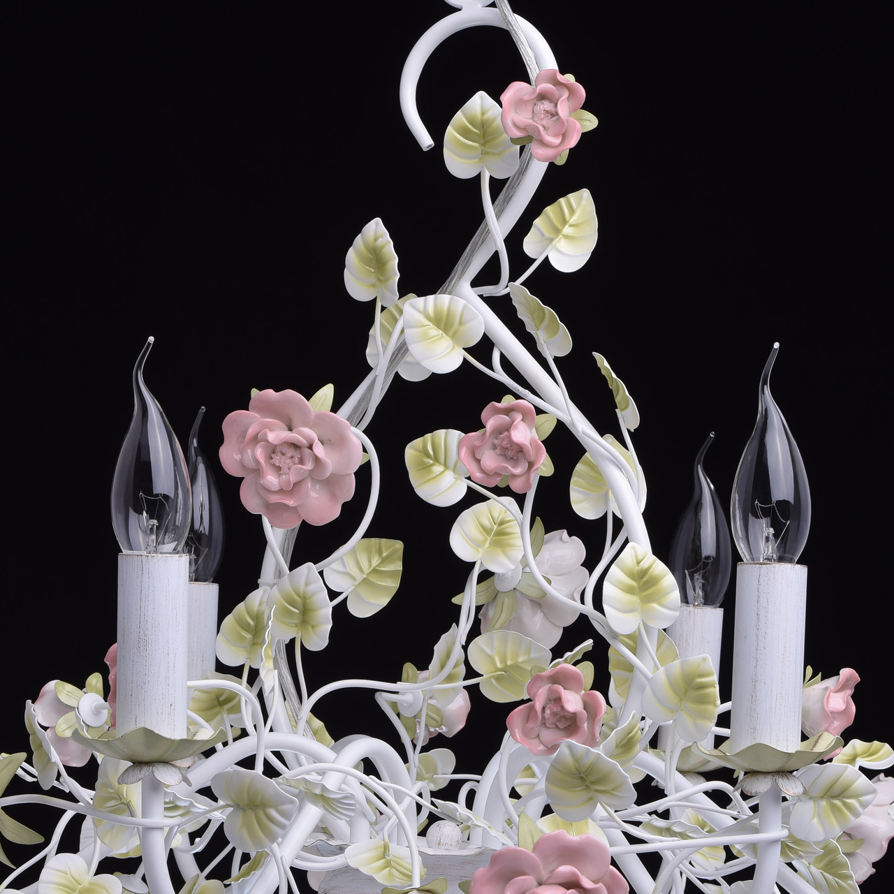 Kwiatowy żyrandol na sześć żarówek świeczek MW-LIGHT Flora. Wnętrza urządzone w stylistyce shabby chic odznaczają się zwrotem w stronę detali. Przepiękny żyrandol, wykonany z niezwykłą dbałością o szczegóły, przypomina prawdziwe pędy kwiatów otaczające delikatne źródła światła. Jest to wspaniały dodatek do salonu i jadalni – sprawi, że wnętrze nabierze niezwykle ciepłego charakteru.