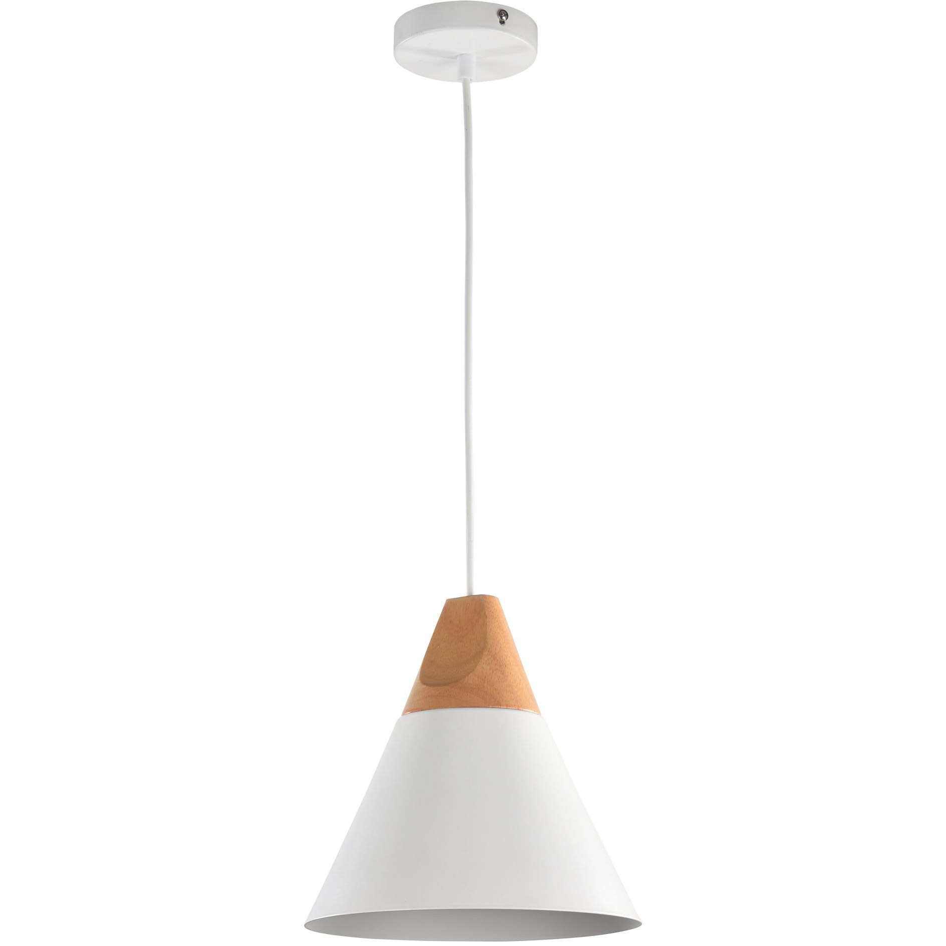 Lampa wisząca biały stożek z drewnianą bazą Bicones Maytoni Modern.