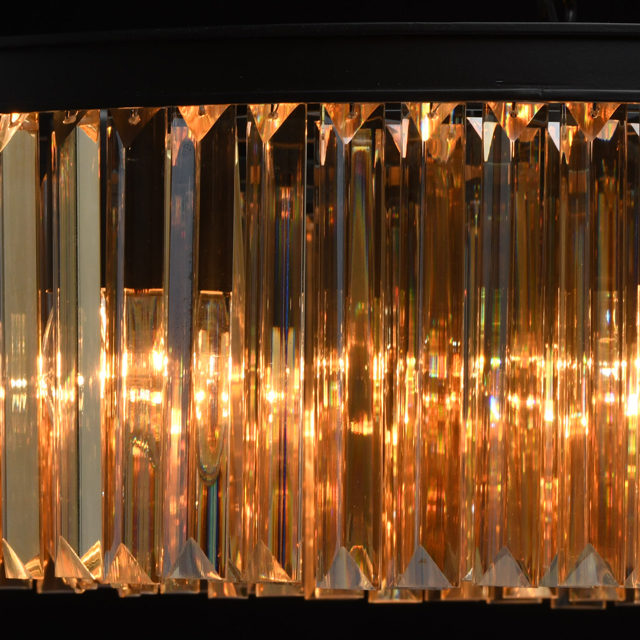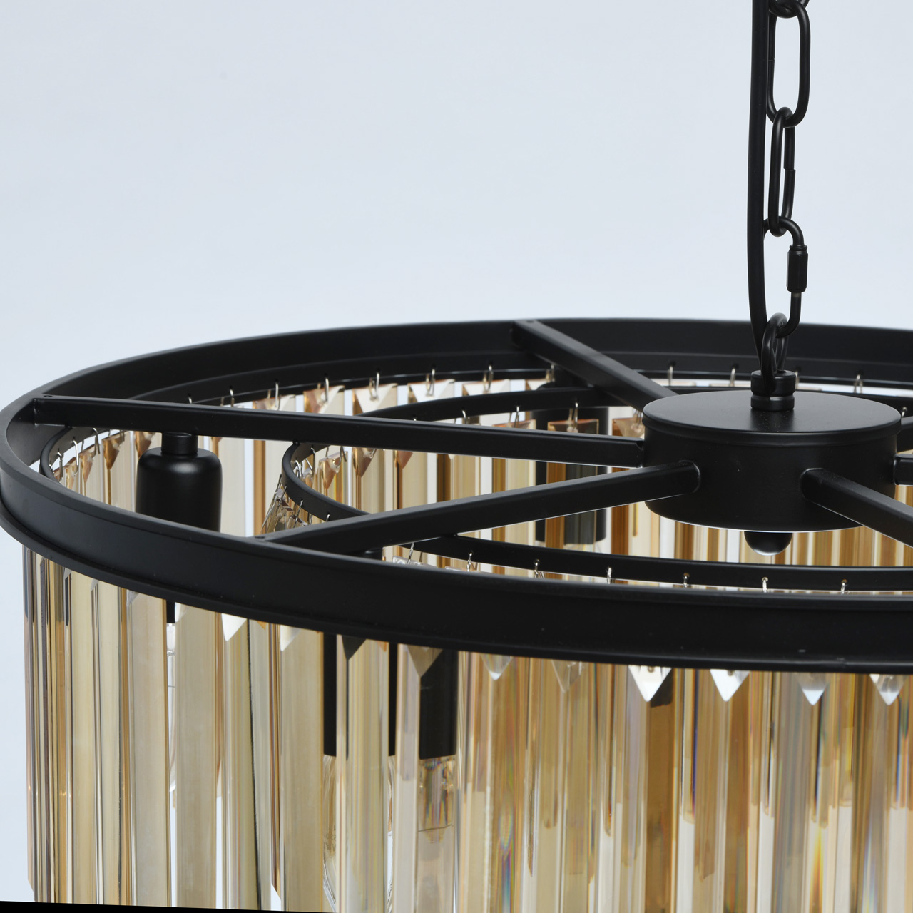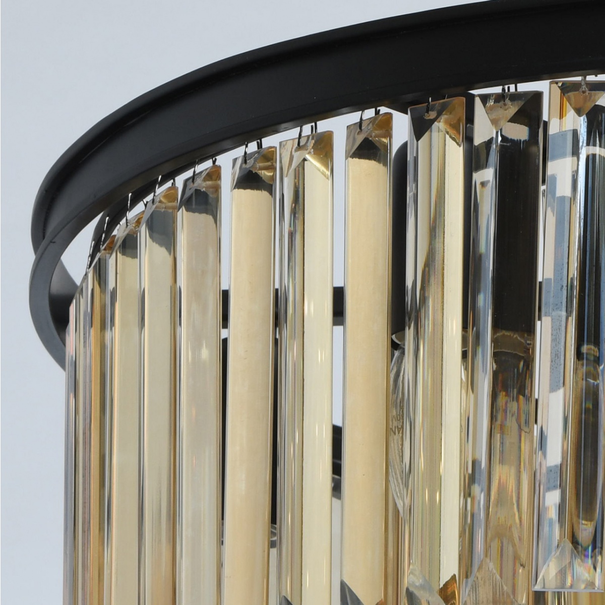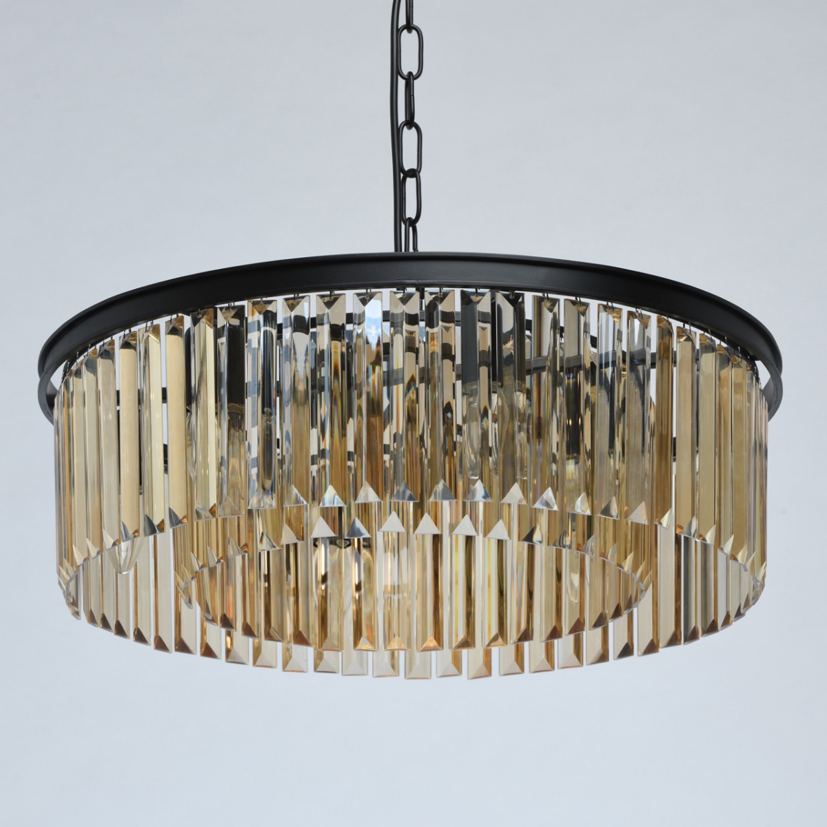 Monumentalność lampy jest odpowiednia dla wnętrz loftów w połączeniu z witrażami lub sklepieniami. Kryształowy wystrój w kolorze topazowym to specjalna wartość lampy. Wyśmienita niegrzeczność z szykiem szlachetnego kryształu ma znaczenie w studiach, ogromnych pokojach i wnętrzach męskich. Klasyczne, bezpieczne mocowanie łańcuchowo-hakowe, nadaje się do pomieszczeń z wysokimi sufitami. Otwarte źródła światła są skierowane w dół, zapewniają bezpośrednie, jasne światło i duży obszar oświetlenia.
