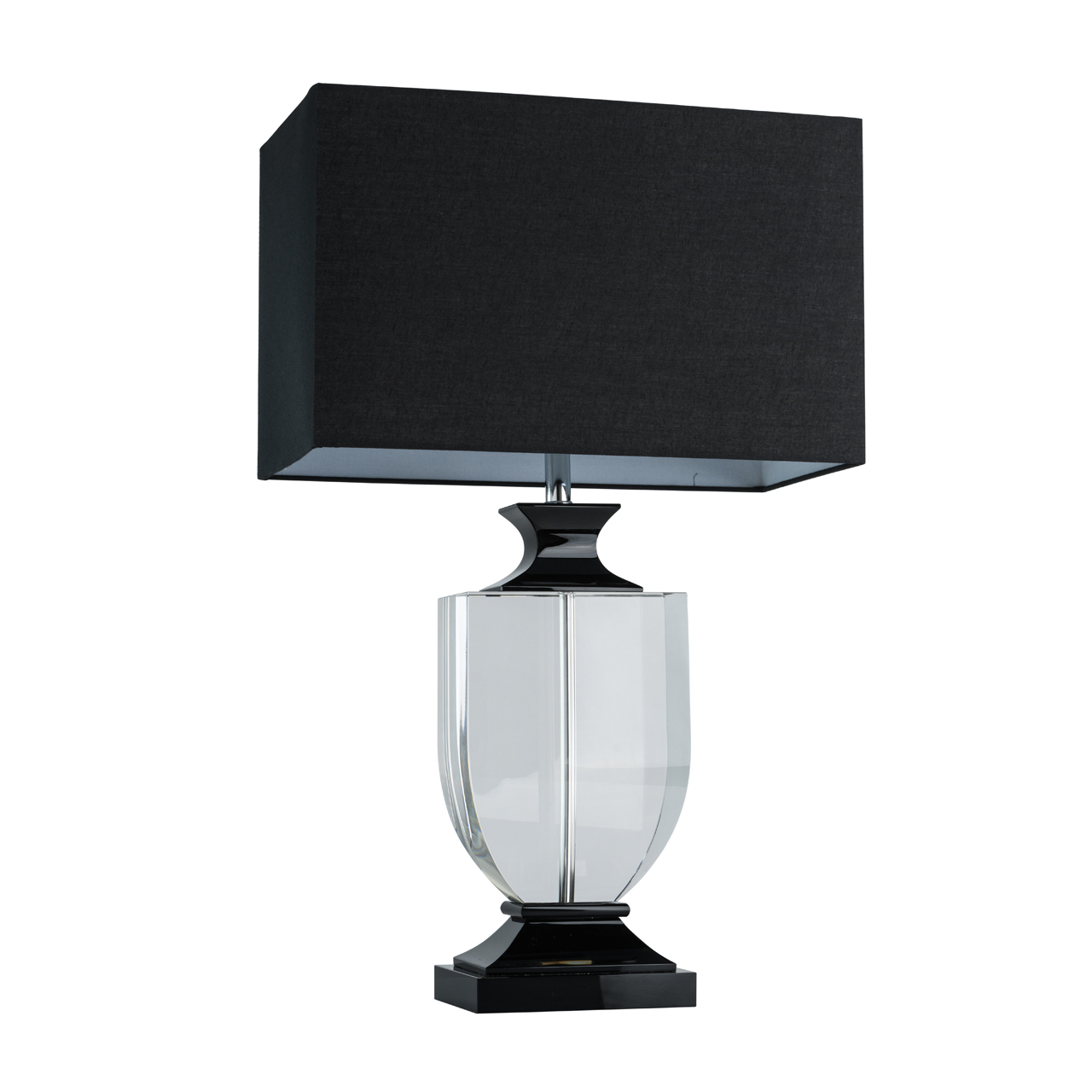 Luksusowa lampa stołowa z kryształową podstawą i czarny abażur CHIARO Elegance. Prawidłowe, geometryczne kształy i rzeczywisty odcień tworzą spektakularny scenariusz oświetlenia strefy. Strumień światła jest chroniony abażurem - zapewnia miękkie światło. Masywne elementy kryształowe nadają wnętrzu charakteru. Obecność klawisza ON na przewodzie zapewnia wygodę podczas używania na wyciągnięcie ręki.