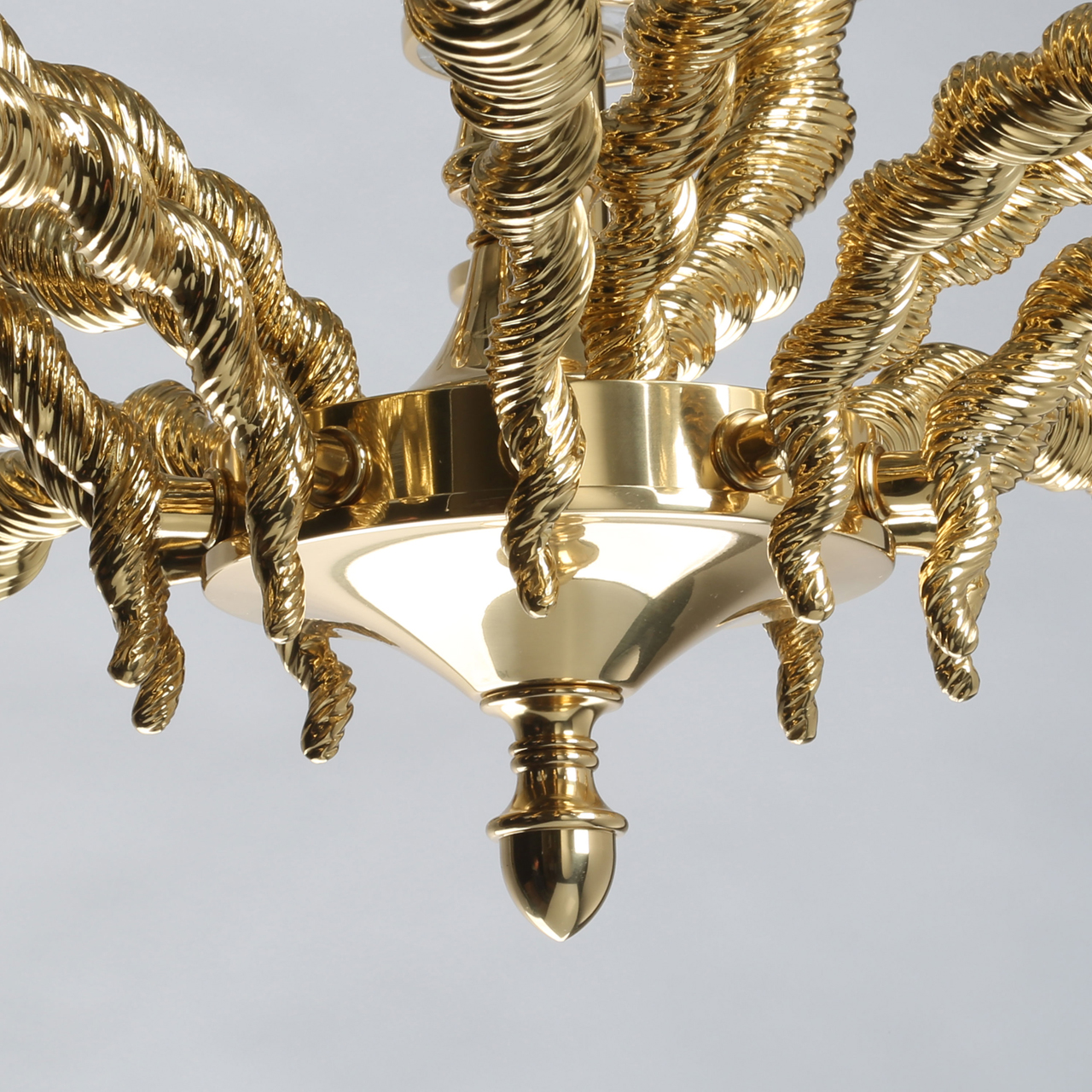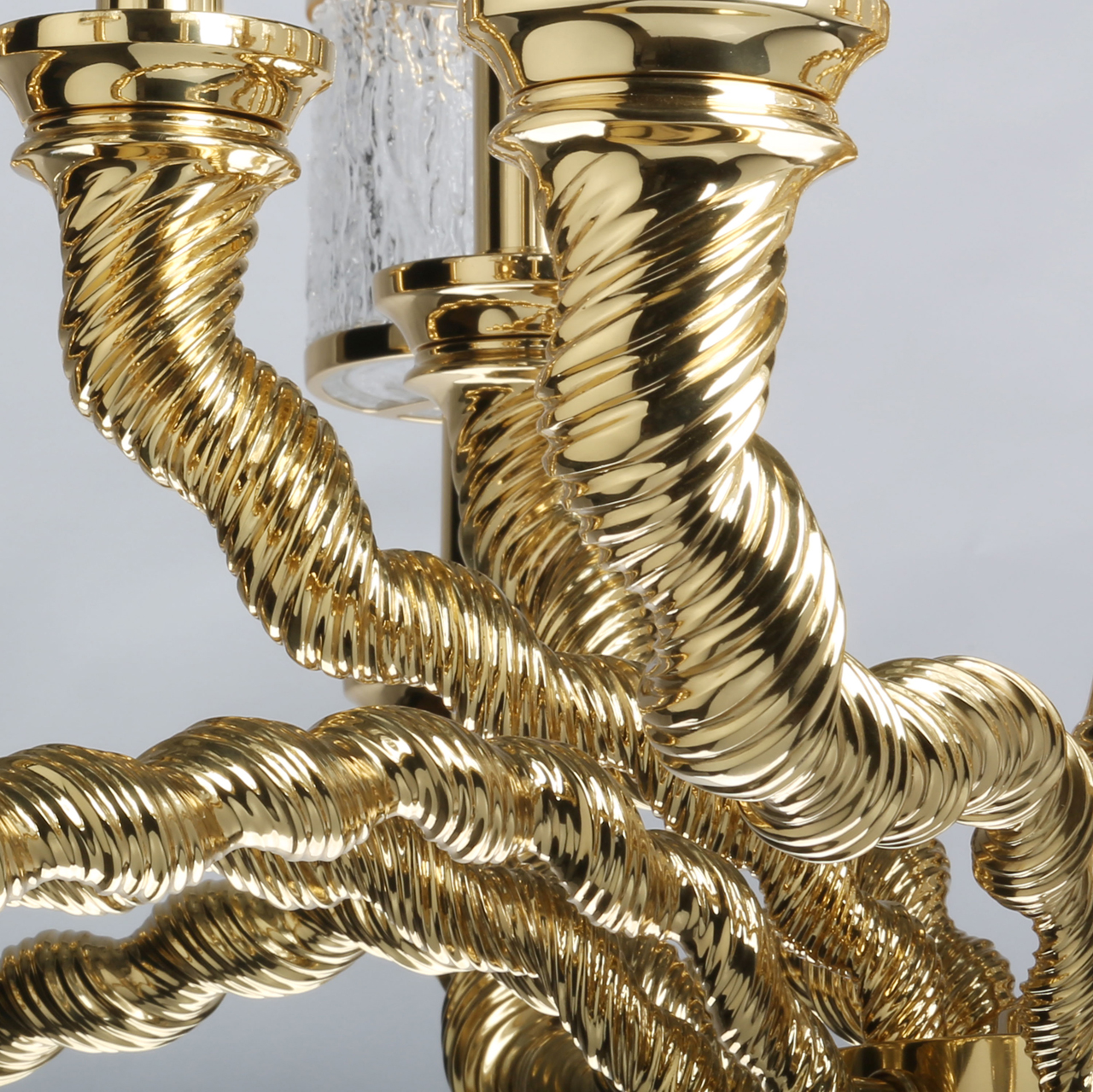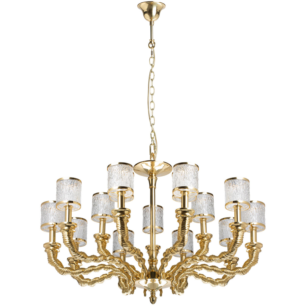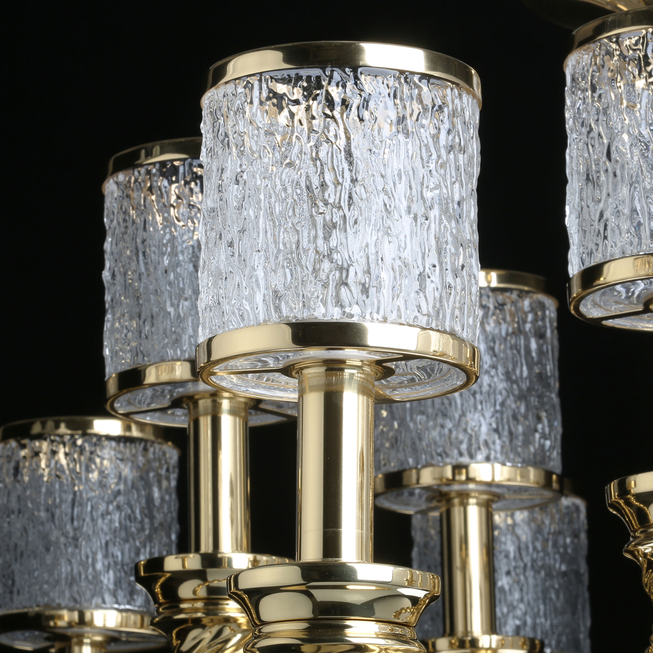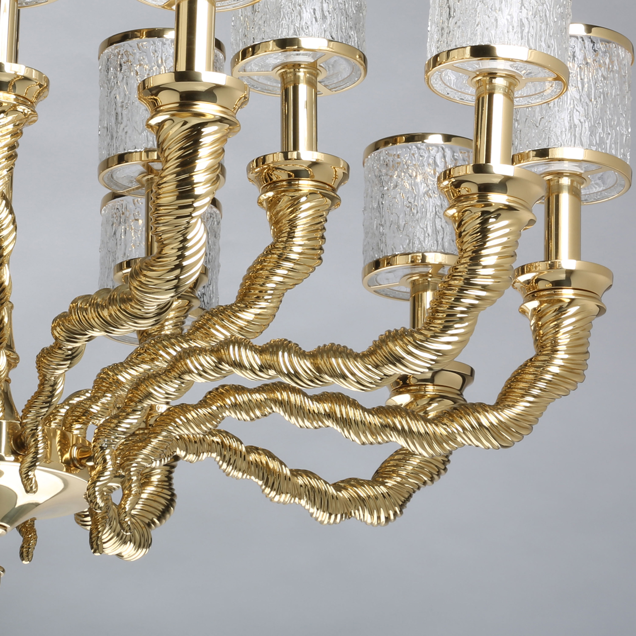 Luksusowy żyrandol mosiężny w stylu neoklasycznym Sofia CHIARO. Luksusowy design w stylu neoklasycznym. Mosiężna podstawa z osobliwym efektem połysku uzyskanym przez dodatkowe polerowanie. Ramię z odlewu artystycznego w stylu Gaudiego. Szklany klosz z teksturą delikatnie rozprasza światło. Duża średnica zapewnia wysokie parametry świetlne. Podstawa mosiężna. Unikalne ramię wykonane jest metodą odlewania artystycznego z polerowaniem. Wyrafinowane, szklane klosze mają mosiężne wykończenia.