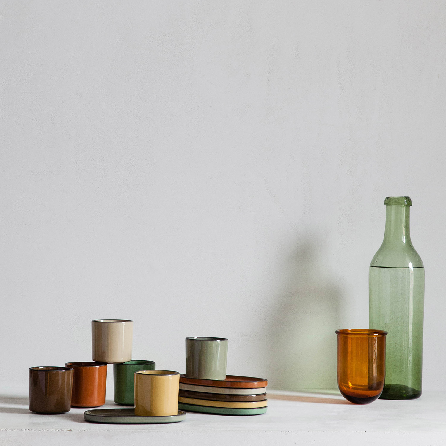 Porcelana, która wyprodukowana został ręcznie ze specjalnie wyselekcjonowanej, czarnej gliny, szkliwionej w jednej z kilku barw, aby uzyskać unikalny kształt każdego egzemplarza.