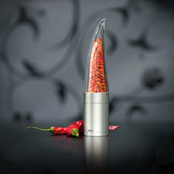 Młynek do mielenia papryczek chilli PePe AdHoc to praktyczny gadżet dla miłośników tej ostrej przyprawy. Zaprojektowany został na kształt chilli specjalnie po to, by nie pomylić jej z żadną inną.