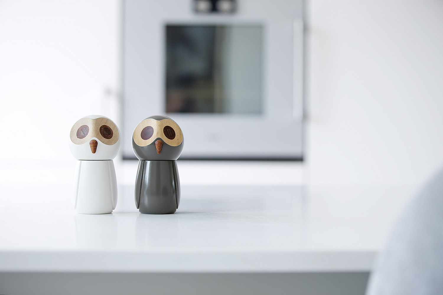 Jesper Wolff znalazł coś zabawnego w zdolności sowy do obracania głowy o 270 stopni. Co sprawiło, że stała się oczywistą inspiracją podczas projektowania młynka do pieprzu lub soli. Pomyślał, że jest coś paradoksalnego i dowcipnego w projektowaniu młynka do pieprzu, który spogląda niewinnie na świat, dopóki nie przekręcisz głowy sowy, by zmielić pieprz.