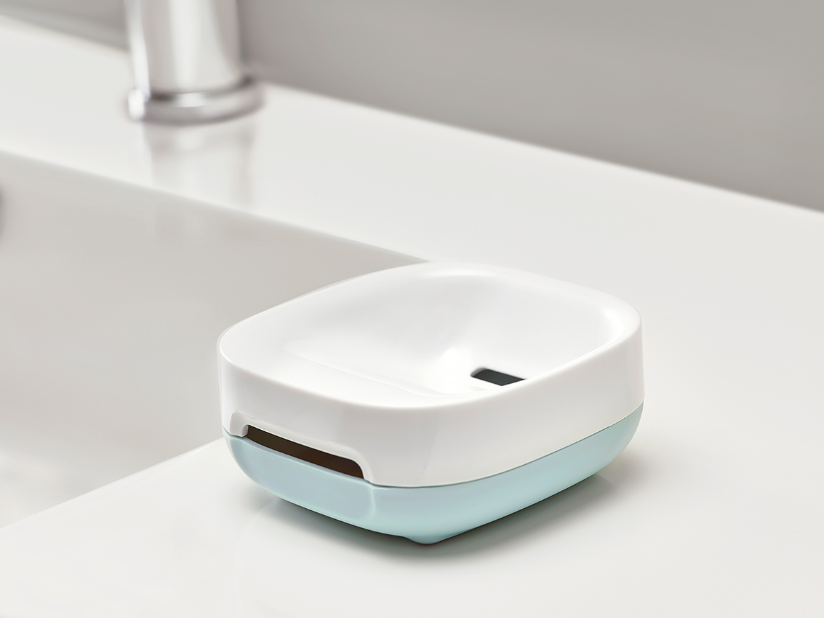 Mydelniczka Slim™ Joseph Joseph. Dzięki niej zaoszczędzisz miejsce na umywalce i utrzymasz w czystości tradycyjne mydło.