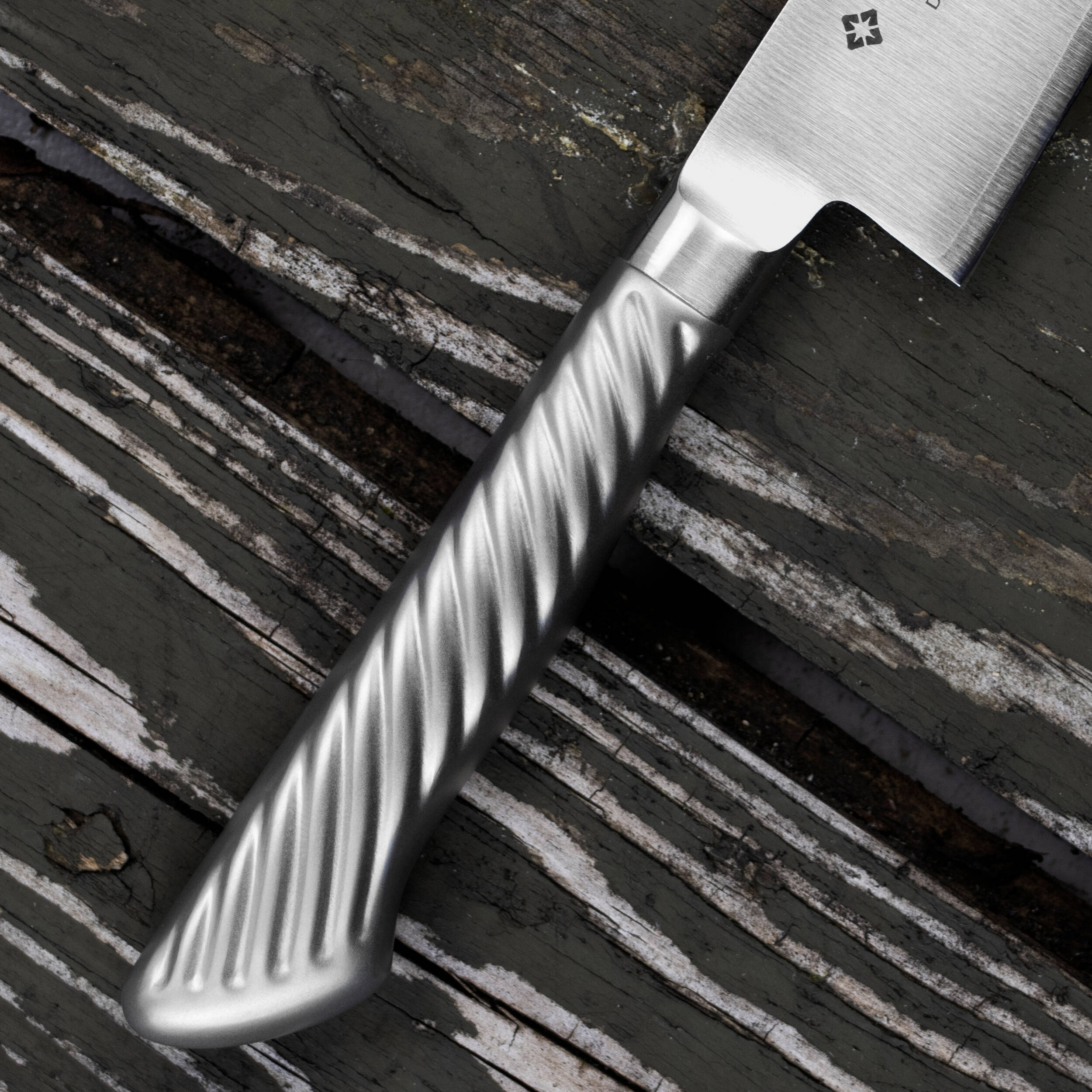 *Stal VG-10 została opracowana przez Takefu Special Steel, firmę założoną w 1954 roku i znaną z produkcji laminowanej stali stosowanej w wytwarzaniu noży. Przez bardzo restrykcyjną politykę eksportową praktycznie wszystkie noże (lub ich głownie) muszą być produkowane w Japonii. Taka zawartość chromu klasyfikuje tą stal jako nierdzewną, ale dodatki molibdenu, wanadu kobaltu sprawiają że ma ponadprzeciętną agresję i pozwala hartować się nawet do 64 HRC, przy czym najczęściej zostaje na poziomie 60-61 HRC. Odporność VG-10 na rdzę i patynę sprawia że noże kuchenne z tej stali są jednymi z najpraktyczniejszych na start przygody z japońskimi nożami, doskonale też sprawdzą się jako prezent.