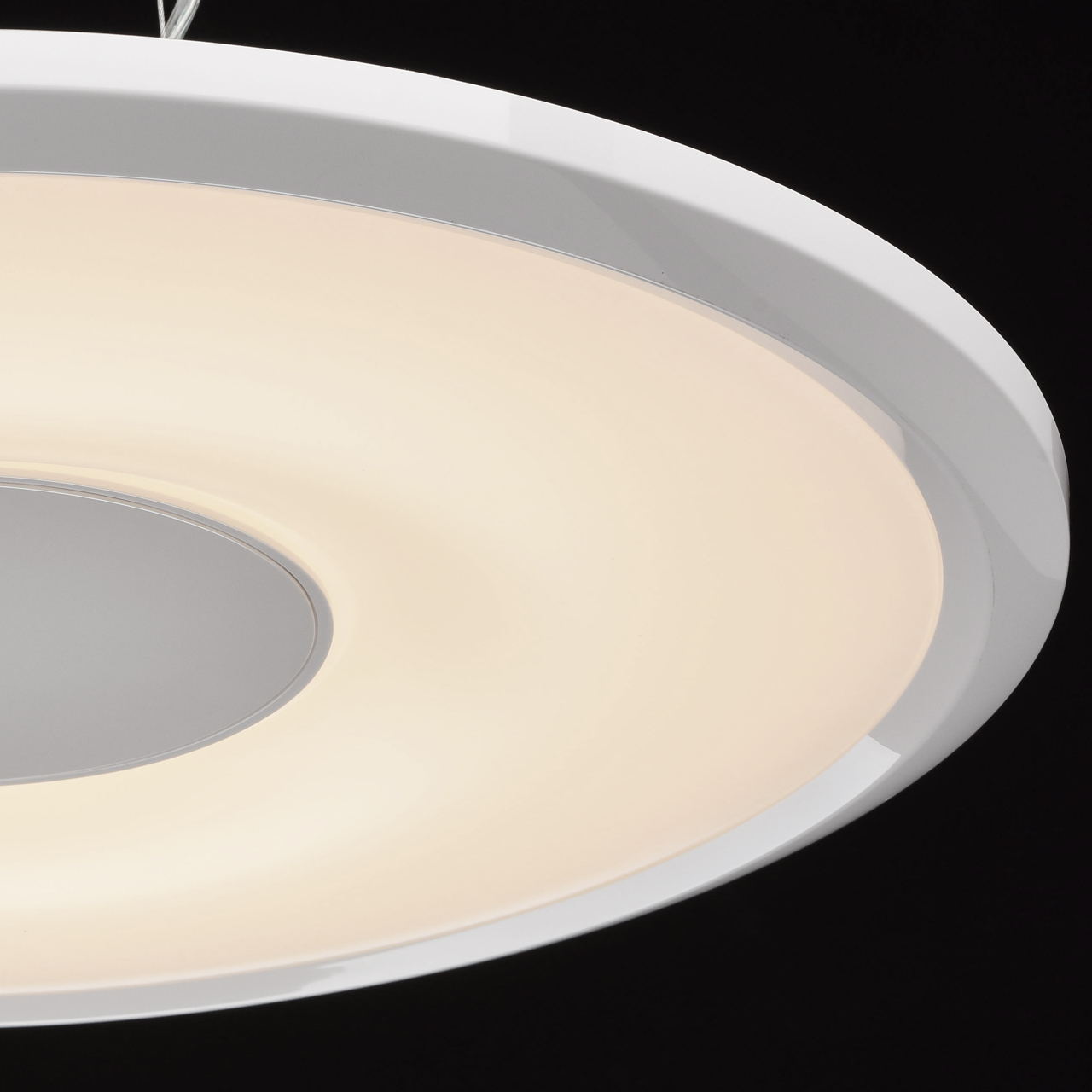Plafon wiszący LED biały RegenBogen Techno. Nowoczesny wzór w kształcie dysku, będzie pasował do kuchni lub jadalni.