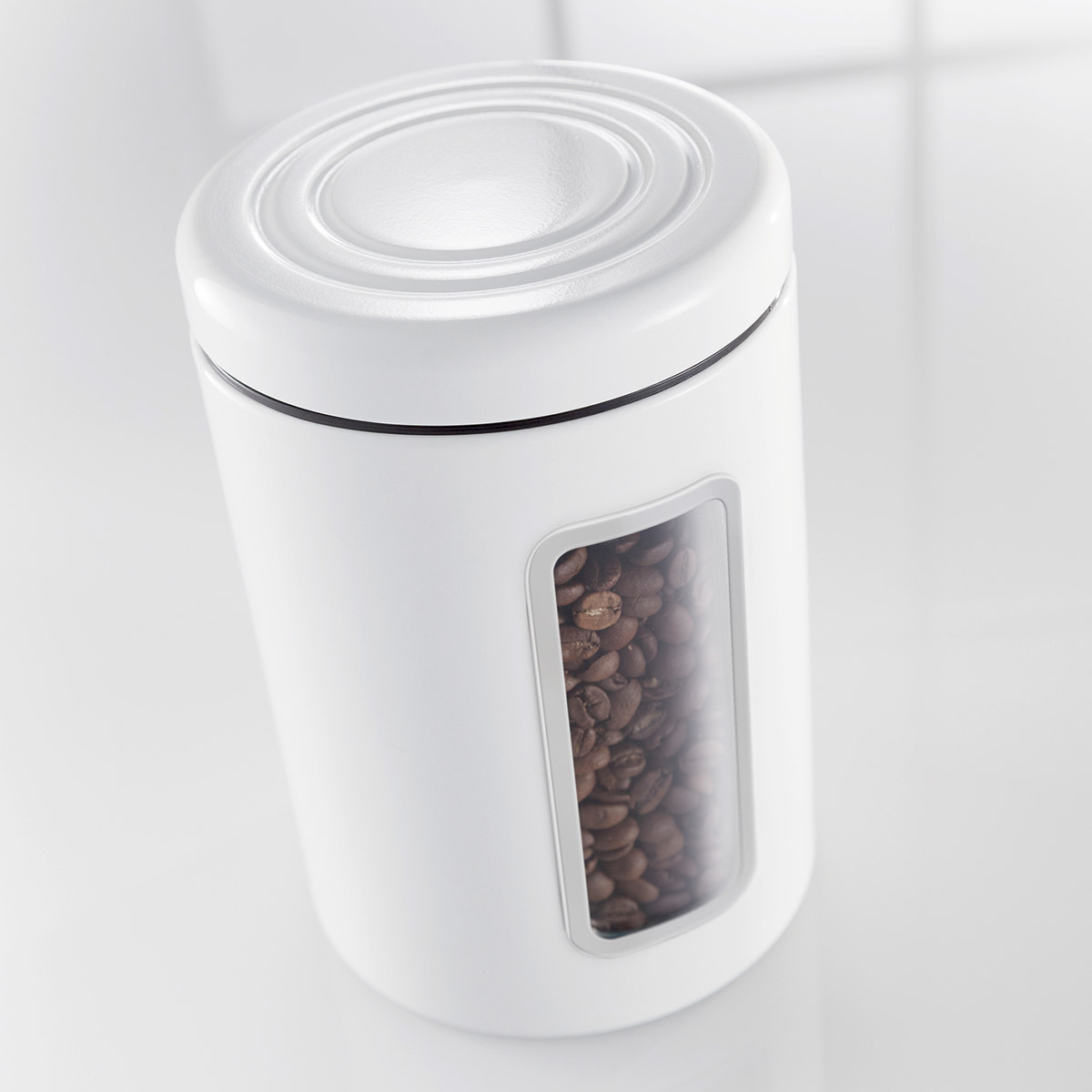Pojemnik kuchenny beżowy, metalowy z okienkiem Classic Wesco. Prawdziwy klejnot dla każdej kuchni, szczególnie jeśli jest w stylu retro. Pasuje do chlebaków Elly Wesco. Wysokiej jakości, metalowy pojemnik na produkty sypkie z akrylowym okienkiem ułatwiającym kontrolę nad zawartością. Szczelna pokrywa sprawia, że idealnie nadaje się do przechowania kawy, mąki, cukru itp.