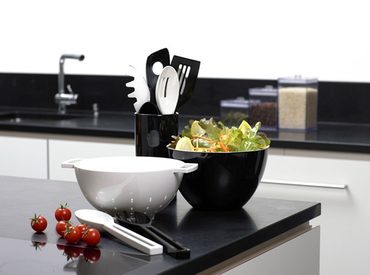 Ciężki, stabilny pojemnik na akcesoria kuchenne. Bez problemu utrzyma kilka łyżek, noży, widelców itp. Dzięki zastosowaniu Melaminy jest odporny na stłuczenia, pęknięcia i rozbicia.