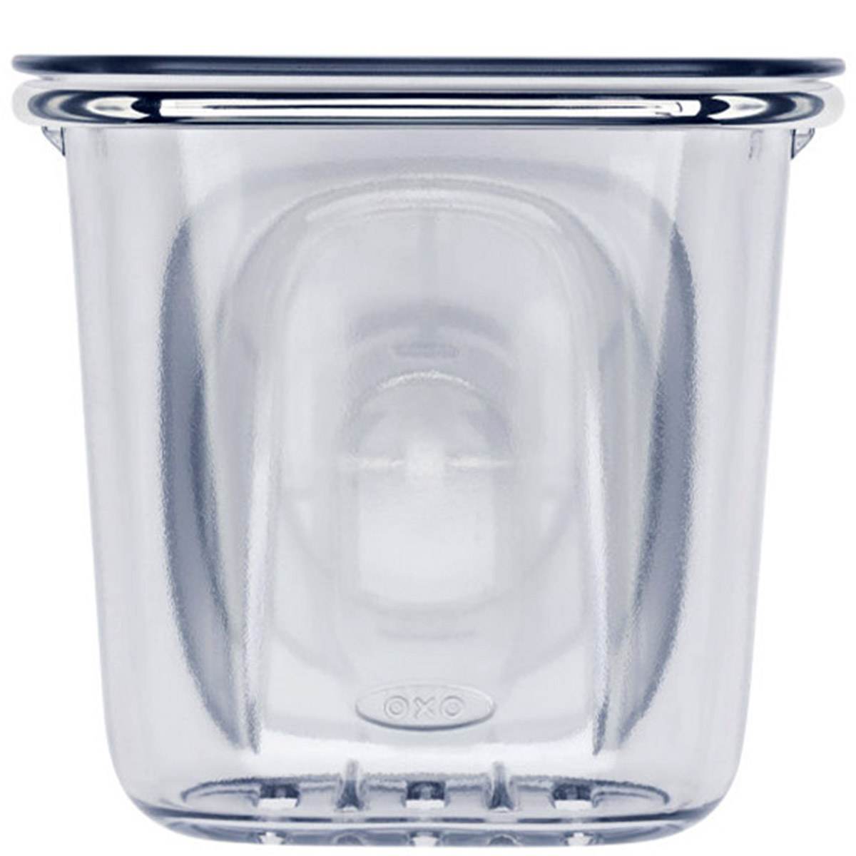 Pojemnik z przyssawką na akcesoria łazienkowe OXO Good Grips. W pojemniku łatwo i bezpiecznie przechowasz niewielkie akcesoria używane w łazience tj. szczoteczki do czyszczania twarzy, maszynki do golenia, grzebienie i niewielkie przybory toaletowe lub próbki kosmetyków. Dzięki mocnej przyssawce pojemnik umieścisz w dowolnym miejscu w łazience lub w toalecie. System mocowania uchwytu do pojemnika oparty jest na mocnej przyssawce, którą należy umieścić na gładkiej i odtłuszczonej powierzchni takiej, jak: szkliwione płytki, metal, szkło. Sam montaż uchwytu jest bardzo łatwy, wystarczy zamocować przyssawkę na wybranej powierzchni, a następnie włożyć do niego pojemnik. Pojemnik wyposażony jest w otwory drenażowe, które ułatwiają suszenie oraz zapobiegają namnażaniu się bakterii wewnątrz jego powierzchni.
