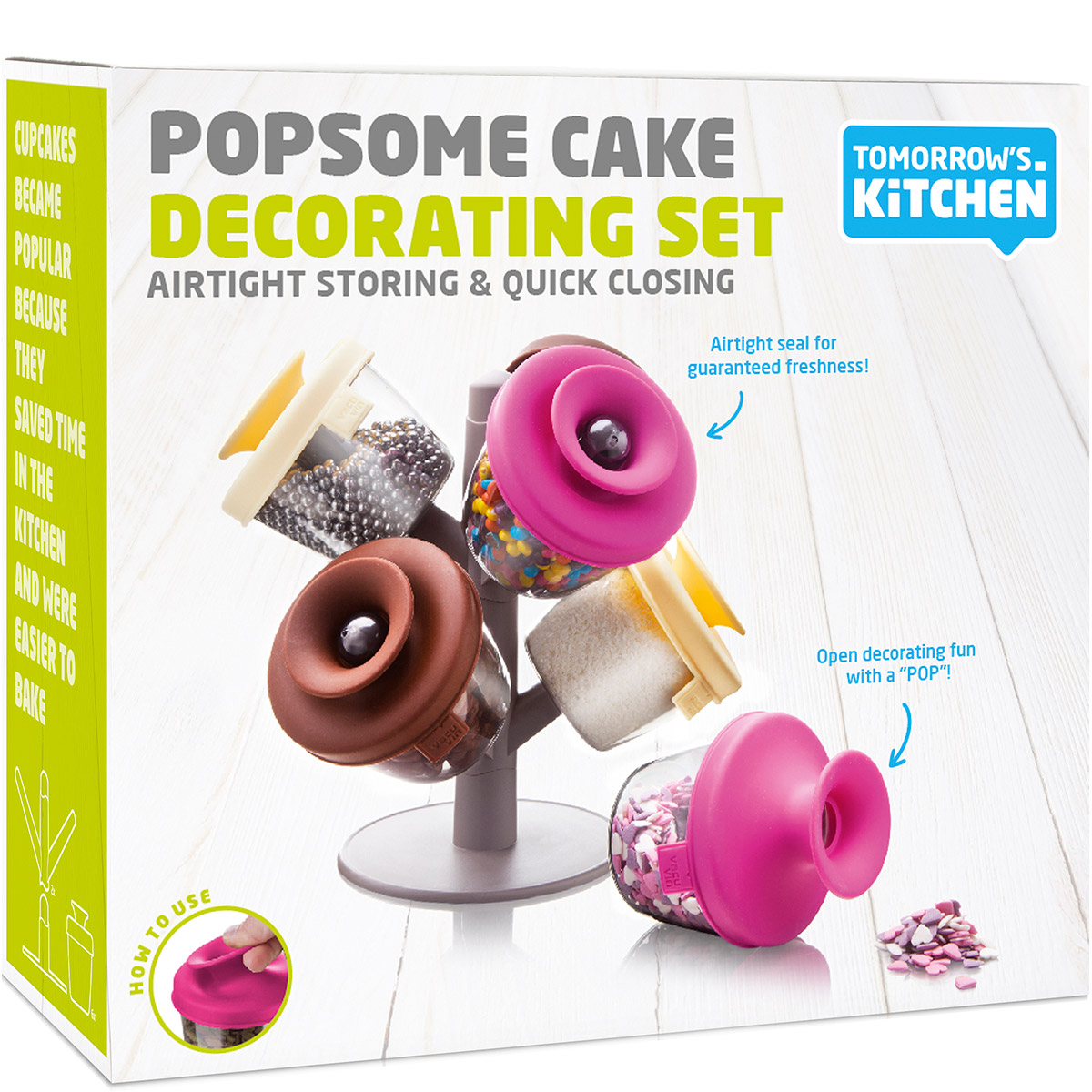 Pojemniki na dekoracje cukiernicze marki Tomorrow's Kitchen. Pojemniki posiadają opatentowane, higieniczne zamknięcie Oxiloc, umożliwiające szczelne przechowywanie oraz praktyczne dozowanie. Dostarczane są wraz z praktycznym, stabilnym stojakiem. Zestaw składa się z 6 pojemników oraz stabilnego stojaka. Stojak na pojemniki ma formę drzewka, co ułatwia zdejmowanie pojemników i zapewnia widoczność zawartości. Pojemniki przeznaczone są do przechowywania drobnych ozdób cukierniczych czy niewielkich cukierków. Będzie znakomicie się prezentował w nowoczesnych kuchniach. W pozycji zamkniętej, pokrywki są szczelne i zabezpieczają zawartość pojemników. Pociągnięcie za kołnierz na środku pokrywki otwiera ją tworząc lejek, przez który można z łatwością wysypywać zawartość pojemnika. Dzięki temu można łatwo ozdobić ciasto bez obawy rozsypania zawartości pojemnika. Naduszenie lejka ponownie zamyka pojemnik. Pokrywki mają różne kolory, co dodatkowo pozwoli odróżnić jakie ozdoby znajdują się w danym pojemniku. Zestaw zapakowany w ładne pudełko prezentowe.