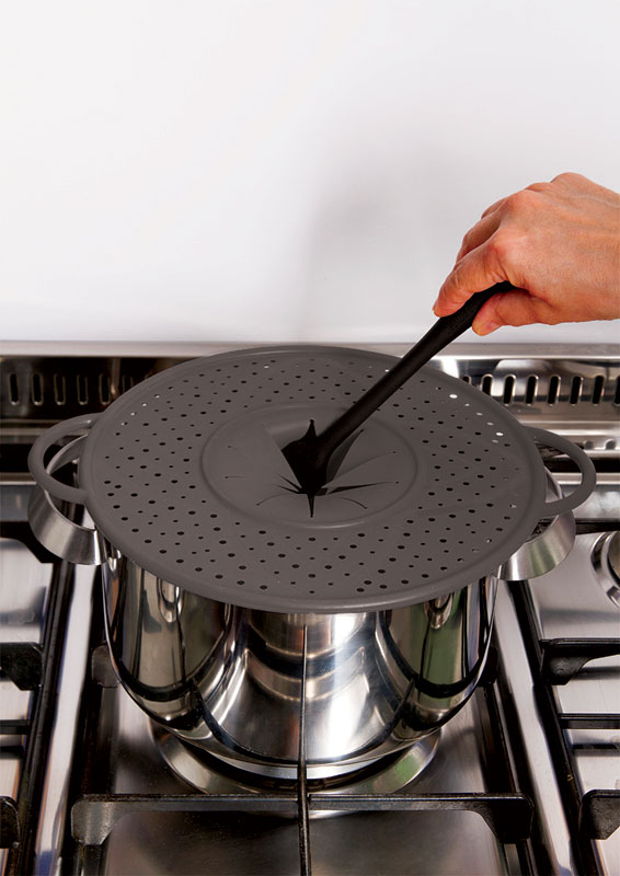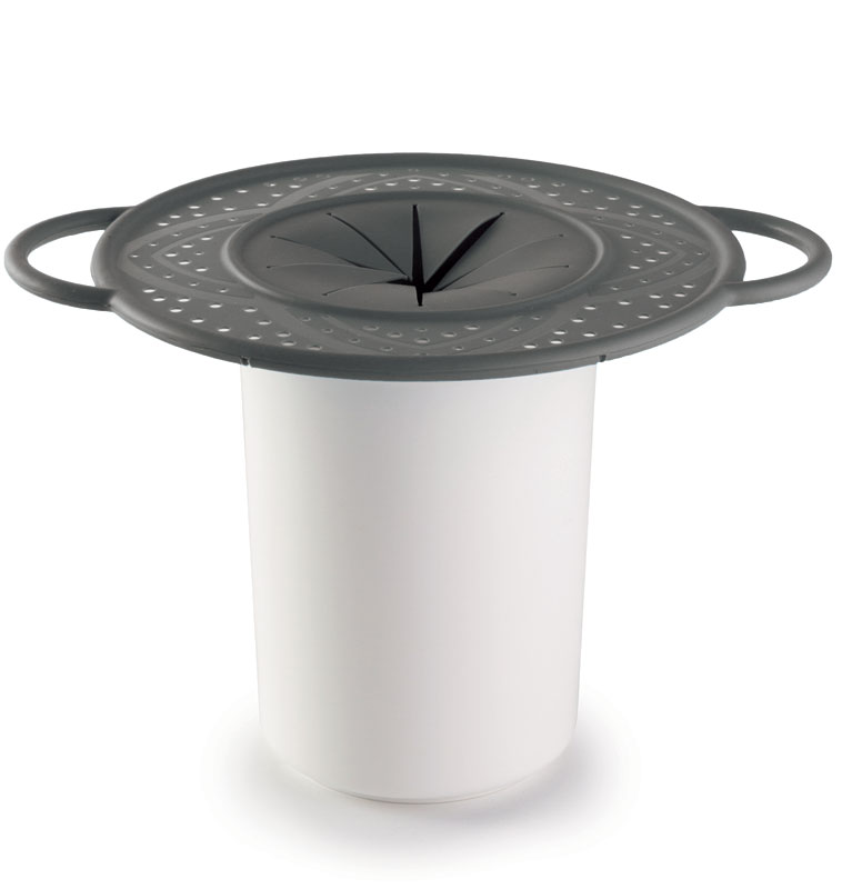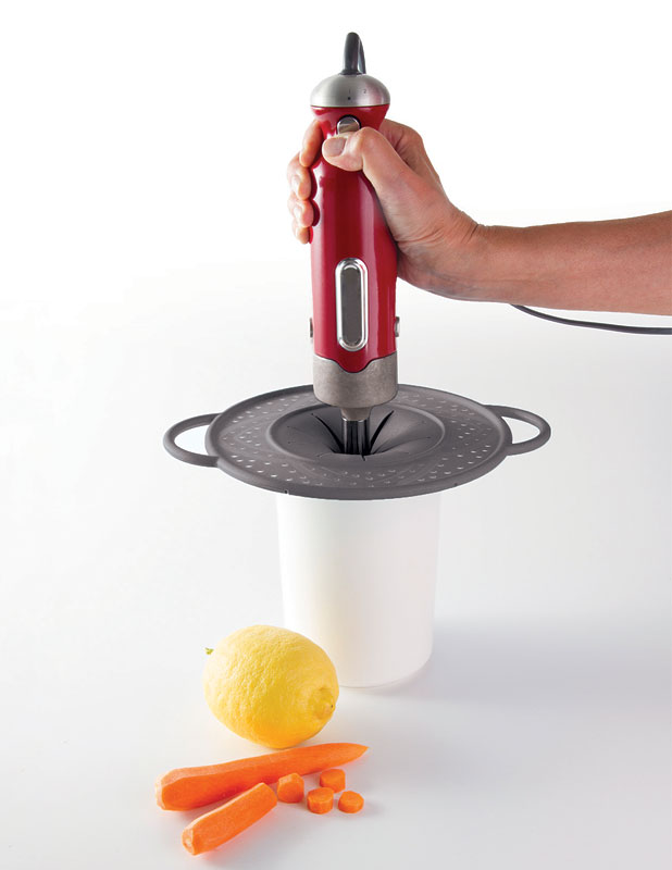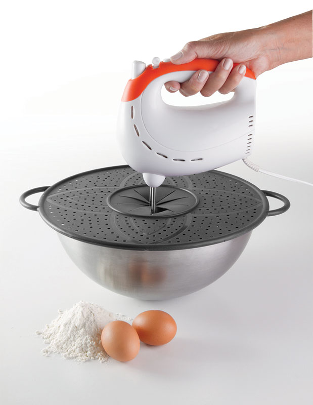 Silikonowa pokrywka do miksowania do umieszczenia na garnku czy misce. Zabezpieczy kuchenny blat przed zachlapaniem. Wystarczy przez środkowy otwór przełożyć mieszadła miksera czy blender i można miksować śmietanę, białka czy ucierać zupę na krem bez obawy o zabrudzenie otoczenia.