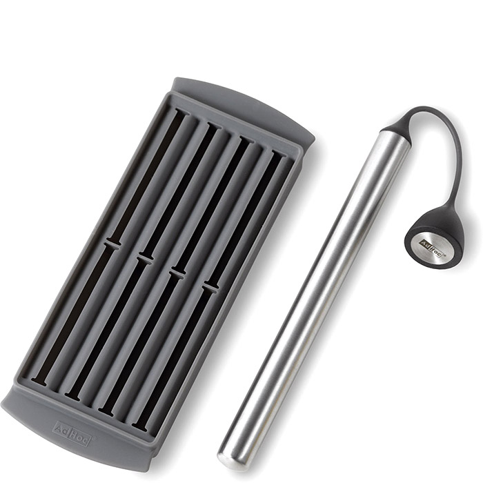 Każdy smakosz wina wie, że powinno mieć ono odpowiednią temperaturę. Jeżeli nie masz czasu, aby schłodzić butelkę wina w lodówce użyj schładzacz Rod Icebar marki Adhoc. Wystarczy mieć wcześniej przygotowane lodowe pręciki, do których wykonania posłuży dołączona silikonowa forma na lód. Następnie pojedynczy pręcik włóż do stalowego pręta, zatkaj go silikonowym korkiem z uchwytem i włóż do butelki z winem. W rezultacie można wypić chłodne wino bez rozcieńczania w nim kostek lodu.