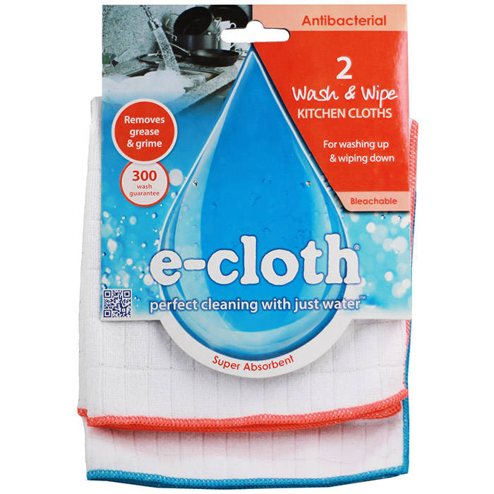 Chłonne, miękkie ściereczki antybakteryjne. Można je stosować do usuwania kurzu, niewielkich plam tłuszczu i brudu, mycia powierzchni kuchennych za pomocą wody lub z niewielkim dodatkiem środka czyszczącego. Zaawansowany technologicznie materiał, z którego je wyprodukowano, to efekt wielu badań laboratoryjnych. Struktura tkaniny zapewnia łatwe wypłukiwanie brudu, a zawarte w niej jony srebra mają właściwości bakteriobójcze. Ściereczki, wykonane z bardzo wytrzymałego materiału, mają gwarancję 300 prań mechanicznych. W przeciwieństwie do innych z oferty e-cloth, można je wybielać.
