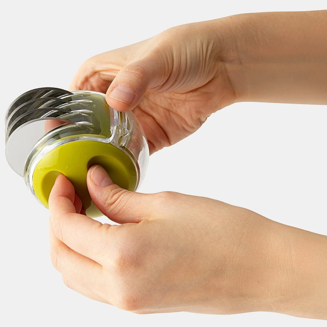 Siekacz do ziół HerbZoom Chef'n. Dodaj aromat świeżych ziół do każdego przepisu. Rodzina akcesoriów Zoom właśnie zyskała nowego członka! Innowacyjne podejście do projektu HerbZoom™, który mieści się w dłoni i toczy się, mieląc świeże zioła. Obróć tarczę z boku, aby odsłonić ostrza do mielenia, chowaj ostrza w celu bezpiecznego przechowywania.