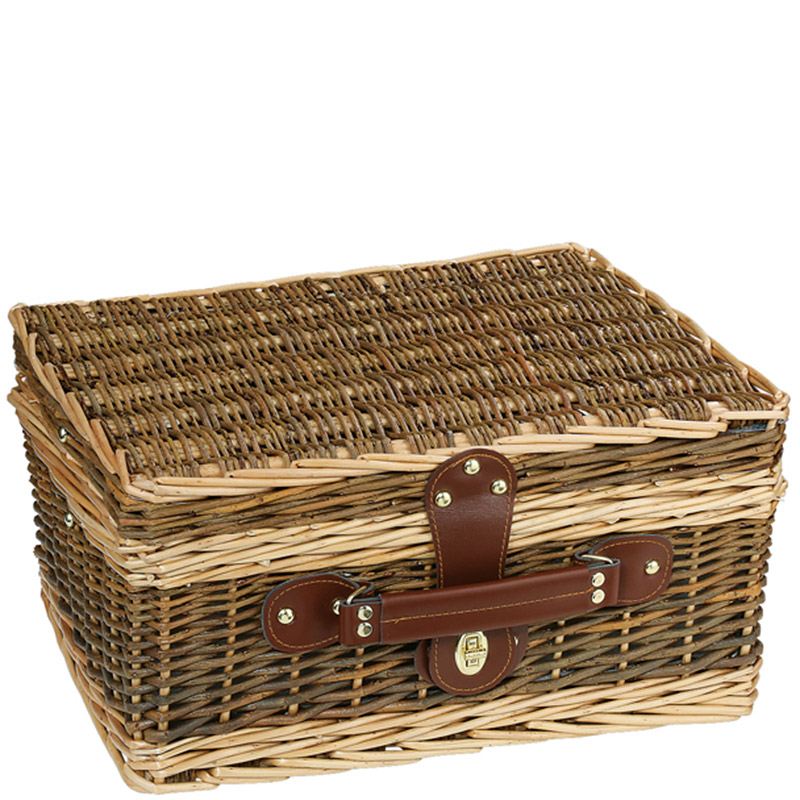 Solidny kosz piknikowy z wyposażeniem dla dwóch osób Cilio Melano. Bogate wyposażenie to komfort podczas pikniku czy wypadu za miasto we dwoje. Na wyposażeniu znajdują się zarówno sztućce, kieliszki i talerze jak i niewielka komora termiczna. Wygodna rękojeść ułatwia bezpieczne przenoszenie. Elementy wyposażenia są stabilnie utrzymywane przez zapięcia z ekoskóry.