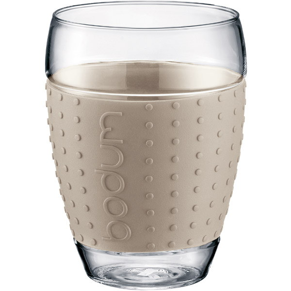 Zestaw dwóch szklanek Pavina firmy Bodum. To wyjątkowy komplet, wykonany z wysokiej jakości szkła. Szklanki dodatkowo ozdobione zostały silikonową opaską, która nie tylko dodaje im uroku ale również zapobiega oparzeniu dłoni czy wyśliźnięciu się naczynia z ręki i czyni je bardzo miłe w dotyku. Idealnie nadają się do ciepłych i zimnych napojów, a także można w nich serwować różnego rodzaju desery. Szklanki z serii Pavina dostępne są w różnych wersjach kolorystycznych i są niezwykle praktyczne. Można myć w zmywarce i podgrzewać w nich potrawy lub napoje w mikrofalówce.