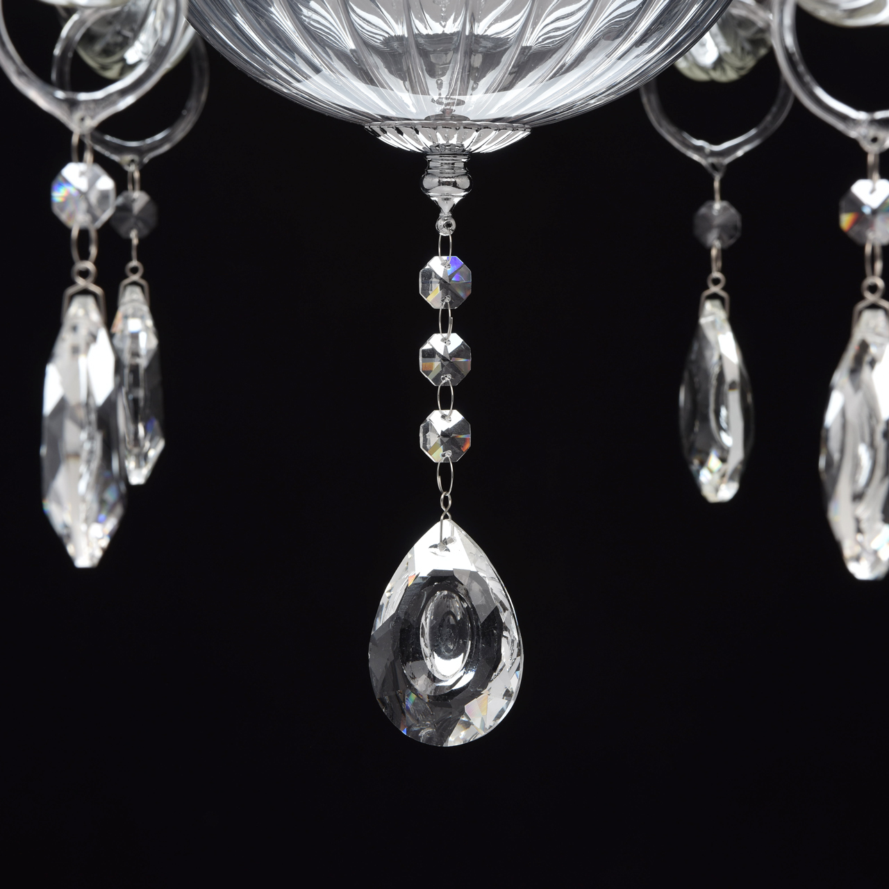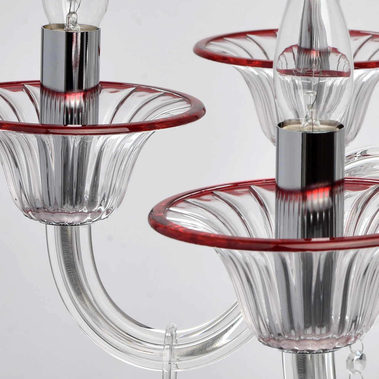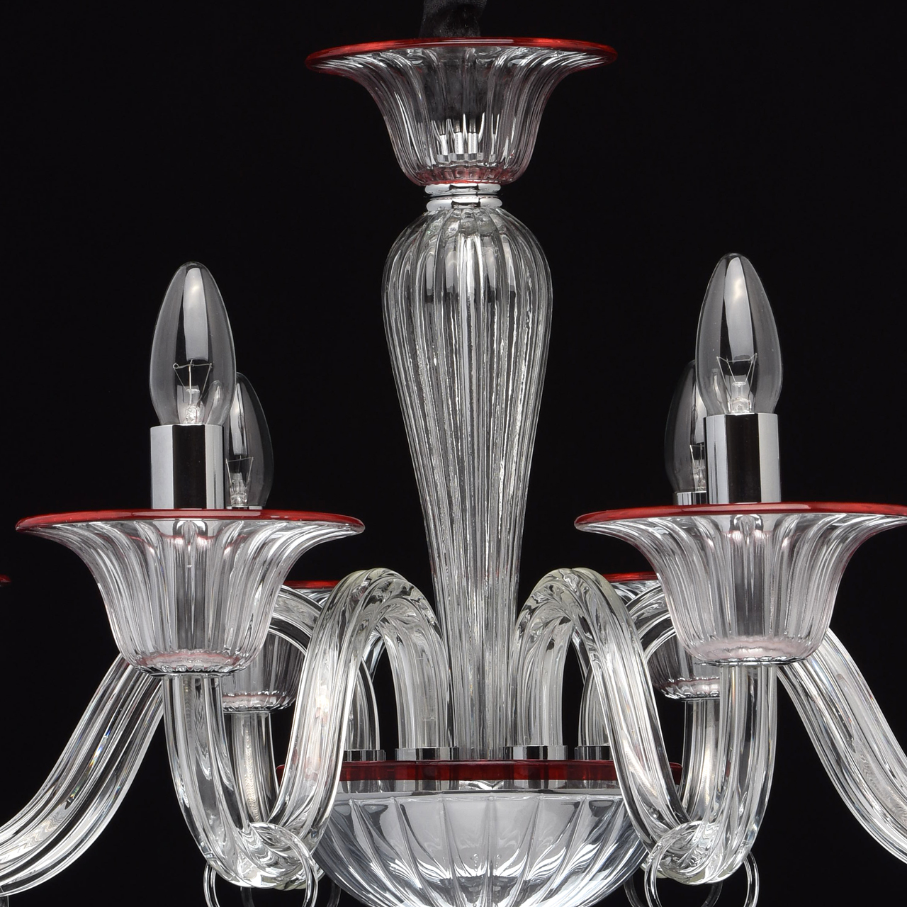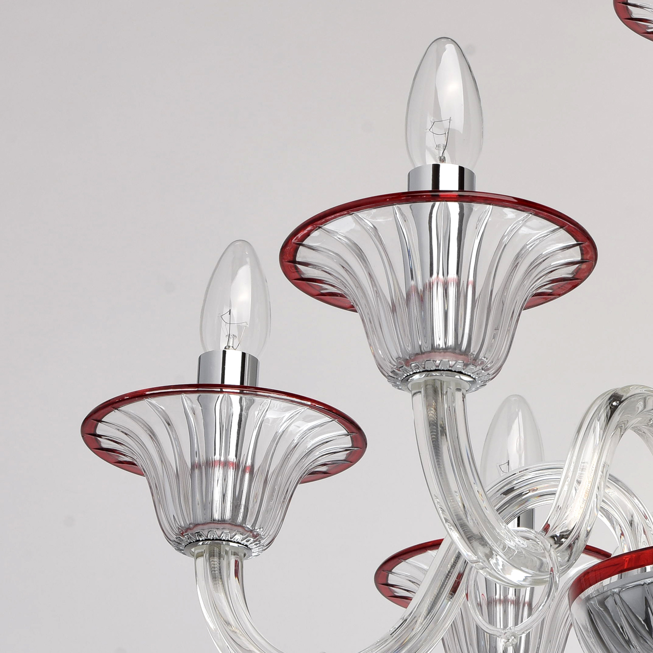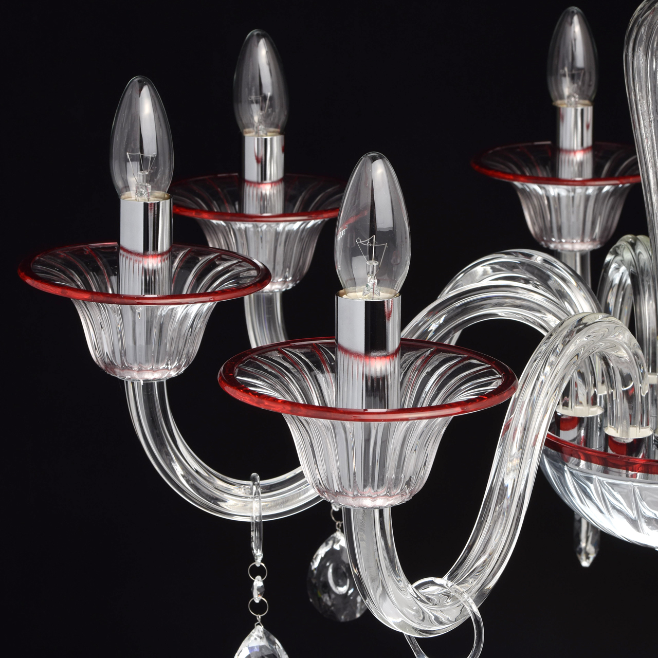 Szklany, 8-ramienny żyrandol z czerwonymi wykończeniami MW-LIGHT Elegance.