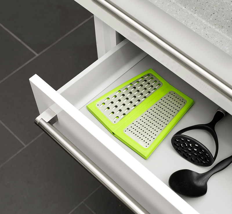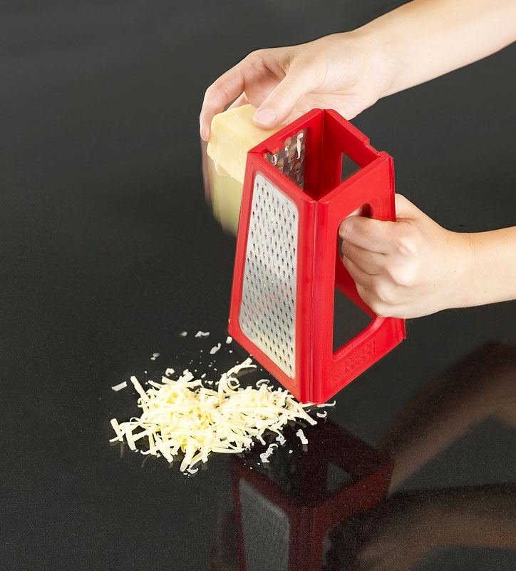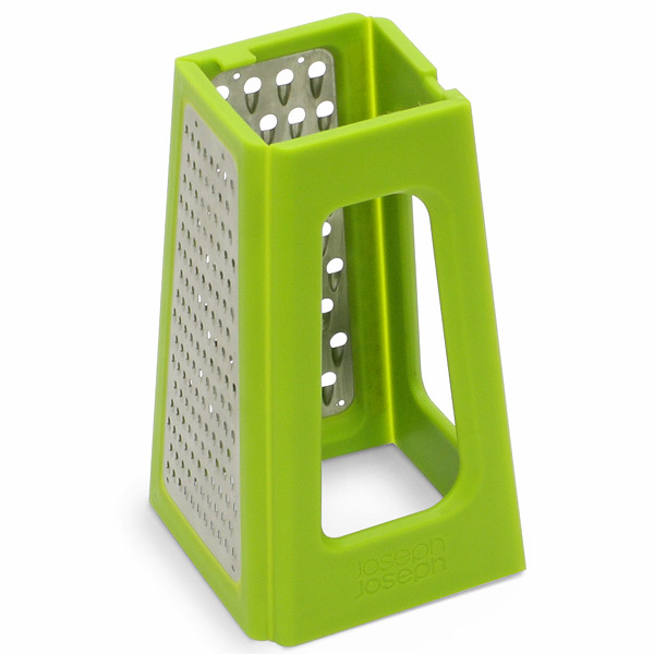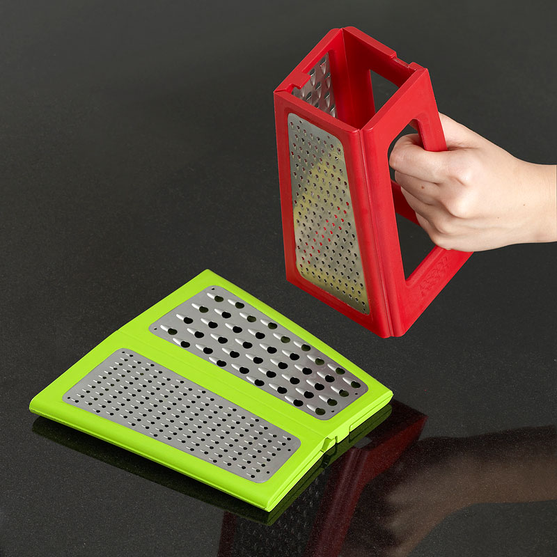 Składana tarka marki Joseph Joseph to kolejny produkt tej firmy, który pomoże zagospodarować nam miejsce w małej kuchni. Dwie ścianki wyposażone są w tarki o różnej grubości, a kolejne dwie tworzą wygodny uchwyt, dzięki czemu wygodnie zetrzesz nawet najtwardsze warzywa. Tarka stabilnie stoi na blacie, a trzymana pewną ręką pomoże zetrzeć ser albo warzywa bezpośrednio nad naczyniem lub gotową potrawą. Po umyciu można tarkę złożyć i schować do szuflady z innymi narzędziami kuchennymi.