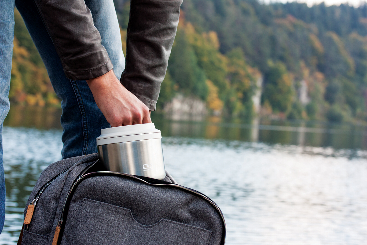 Termos obiadowy 0,65 Litra srebrny Monbento Element. Uwolnij się od ograniczeń lodówki i kuchenki mikrofalowej! Utrzymując ciepłe lub zimne posiłki do 5 godzin (w zależności od zawartości i warunków użytkowania), dostarcza 650 ml potrzebnej energii osobom jedzącym w ruchu, bez względu na to, gdzie się znajdują. Dzięki swojej trwałości nie boi się przygód! Jego kompaktowa konstrukcja i waga pozwalają włożyć go w dowolne miejsce - walizkę, plecak lub torebkę - na nowe wyprawy. Nigdy więcej wypadków z posiłkiem w Twojej torbie! Dzięki dużemu skokowi gwintu i hermetycznemu połączeniu, jest idealnie szczelny: można go wszędzie spokojnie przenosić. Przycisk w pokrywce umożliwia uwolnienie nadmiaru ciśnienia przed jego otwarciem.