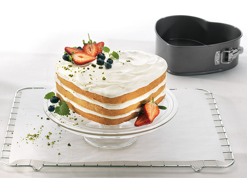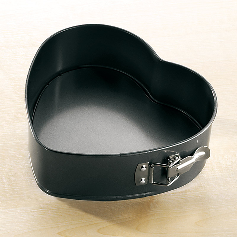 Tortownica w kształcie serca marki Birkmann to unowocześnienie tradycyjnej tortownicy. W zwykłych tortownicach często zdarza się, że tłuszcz i ciasto wyciekają. Spód tej tortownicy został tak zaprojektowany, aby zacisk szczelnie zamknął klips. Gotowe ciasto możemy zostawić na spodzie tortownicy, ponieważ jest on przystosowany do krojenia. Podwyższona krawędź dna pomaga w wyjęciu formy z piekarnika w rękawicach kuchennych. Aby dokładnie umyć tortownicę wystarczy całkowicie otworzyć stalowy mechanizm.