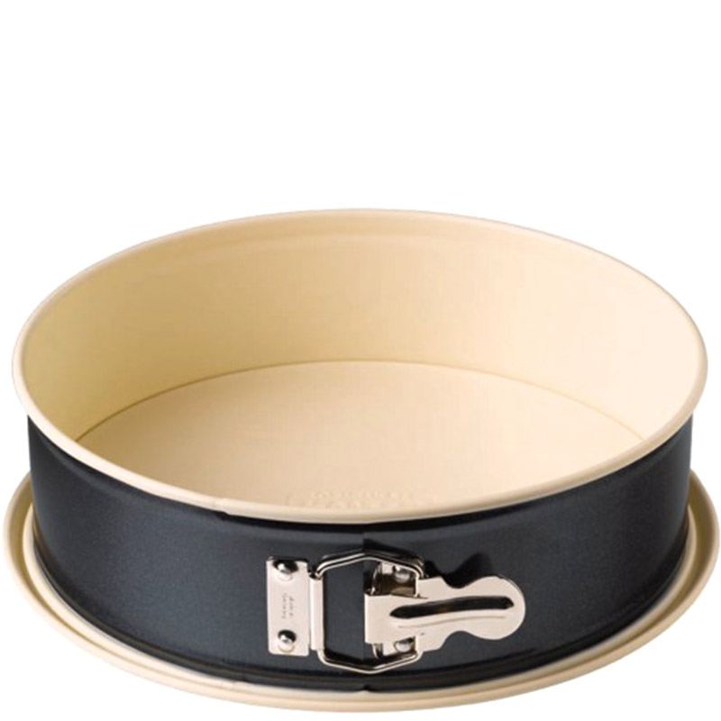 Elegancka tortownica z klamrą o średnicy 28cm, wyprodukowana w Niemczech przez markę Kaiser - europejskiego lidera w produkcji form do pieczenia. Zastosowana 2-warstwowa powłoka ceramiczna to najwyższej jakości, nieprzywierająca powierzchnia, bardzo łatwa do czyszczenia, odporna na zarysowania. Ergonomiczna klamra spinająca formę ułatwia wyjęcie z niej ciasta lub serwowanie bezpośrednio z metalowego spodu. Solidna forma dzięki wysokiej jakości wykonania i zastosowanych materiałów. Użyta, gruba stal ma bardzo dobre przewodnictwo cieplne, dzięki czemu ciasto piecze się w niej równomiernie.