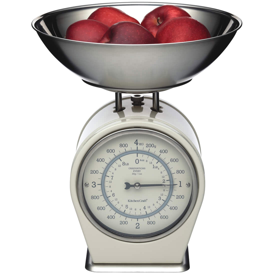 Waga kuchenna mechaniczna z kolekcji Living Nostalgia marki Kitchen Craft niezbędna w każdej kuchni. Waga wyposażona jest w stalową misę. Na dużym, czytelnym wyświetlaczu z łatwością odczytasz prawidłową masę produktów.