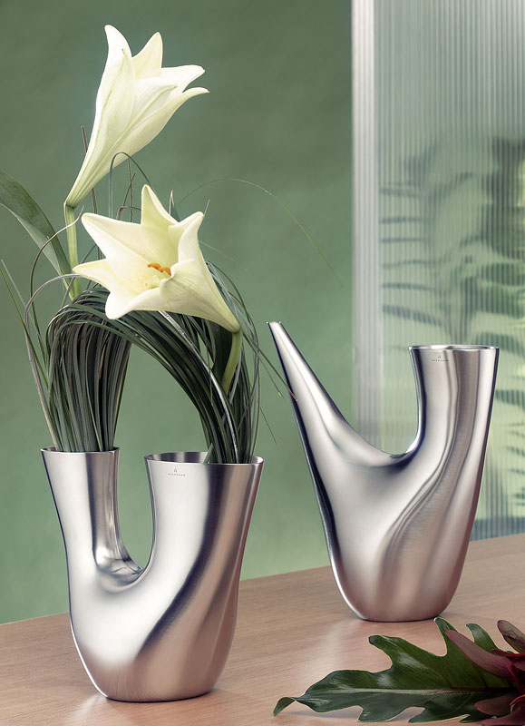 Oryginalny wazon BOCINA marki Auerhahn wykonany został z matowej stali nierdzewnej. Posiada nowoczesny kształt, który przypomina rozgałęzione konary drzew. Podwójna forma sprawi, że można stworzyć w wazonie ciekawe kompozycje kwiatowe. Wazon pełen świeżych kwiatów będzie piękną ozdobą każdego wnętrza. Może być to ciekawy pomysł na prezent.