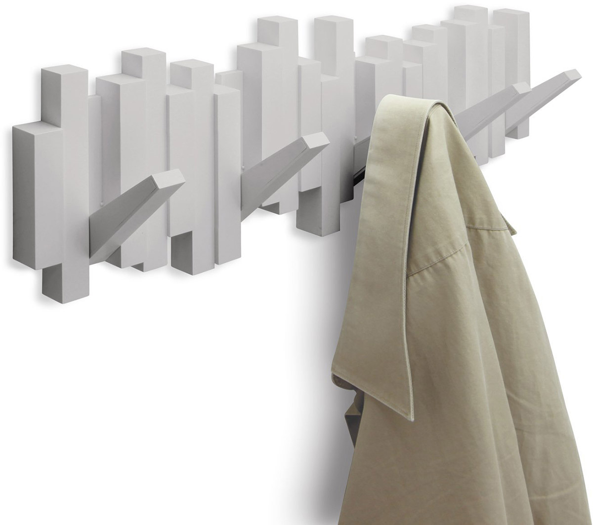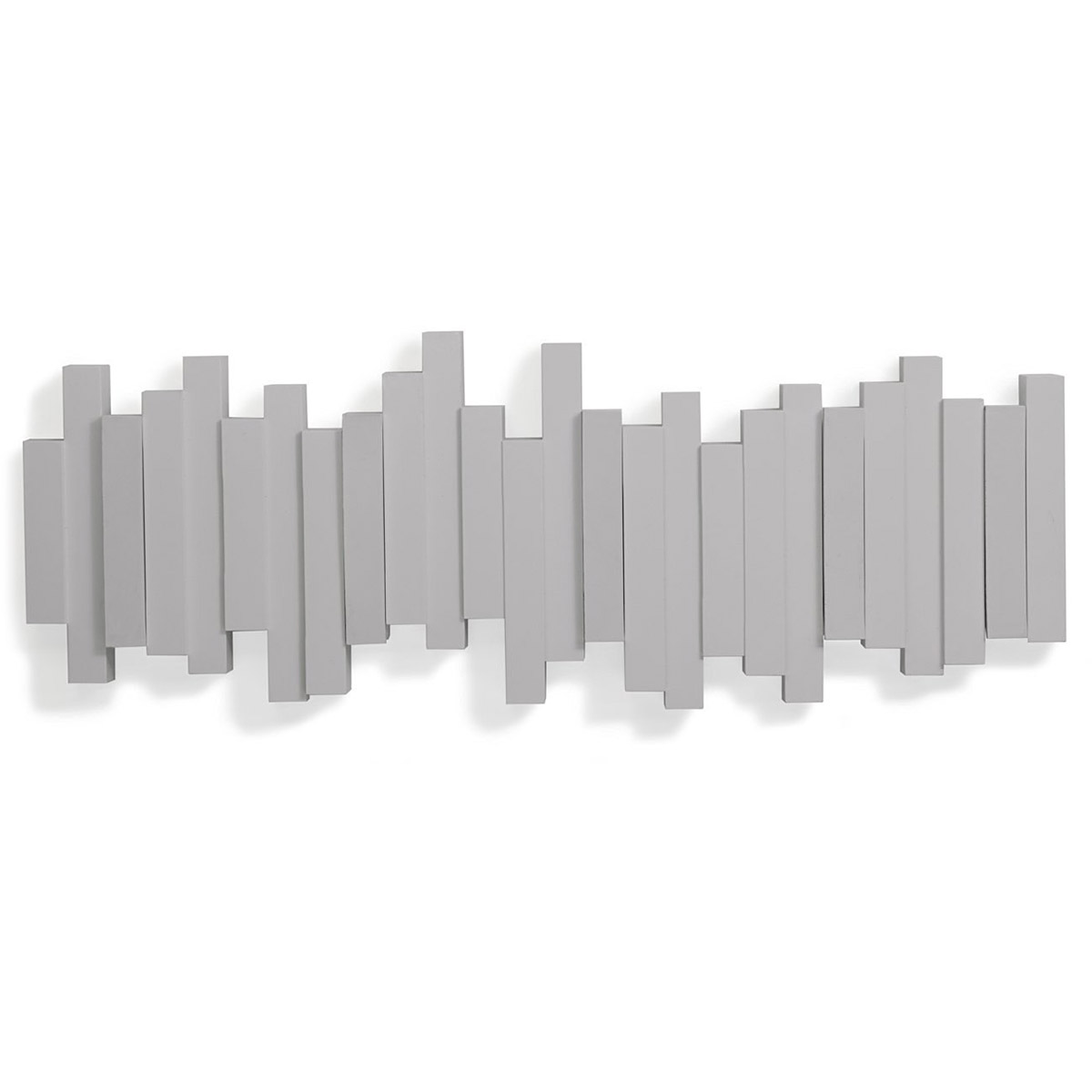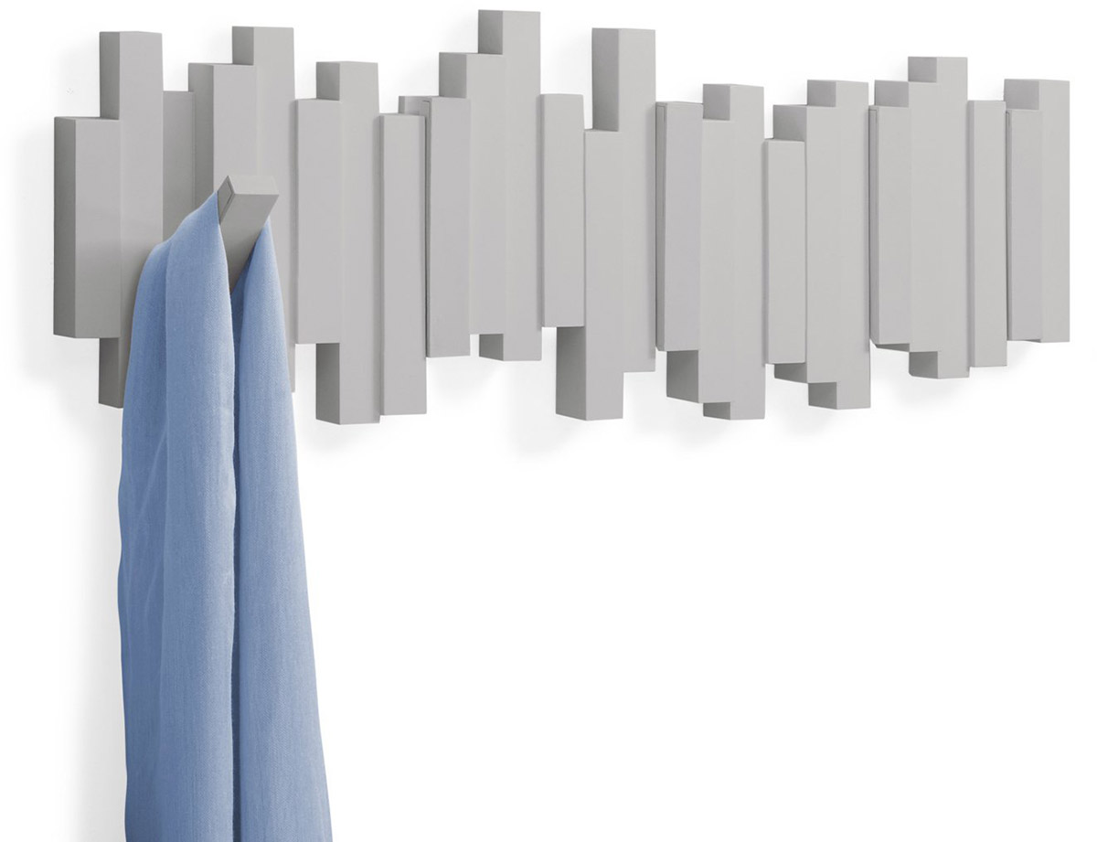 Szary wieszak ścienny na ubrania wykonany z tworzywa sztucznego. Składa się z dużej ilości nieregularnych połączonych ze sobą elementów, dzięki czemu stwarza wrażenie spoglądania na wydruk elektroencefalograficzny. Nadaje to każdej ścianie niepowtarzalnego charakteru podkreślając indywidualizm właściciela w podejściu do wyposażenia i dekorowania wnętrz. Wyszukane walory wizualne wieszaka Sticks marki Umbra sprawiają, że cieszy się on coraz większą popularnością. Z pewnością stanowić będzie ciekawą alternatywę względem wszystkich standardowych wieszaków na ubrania. Staranność i niecodzienne wykończenie nadają temu produktowi futurystycznego charakteru, który świetnie podkreśli walory użytkowe każdego mieszkania.