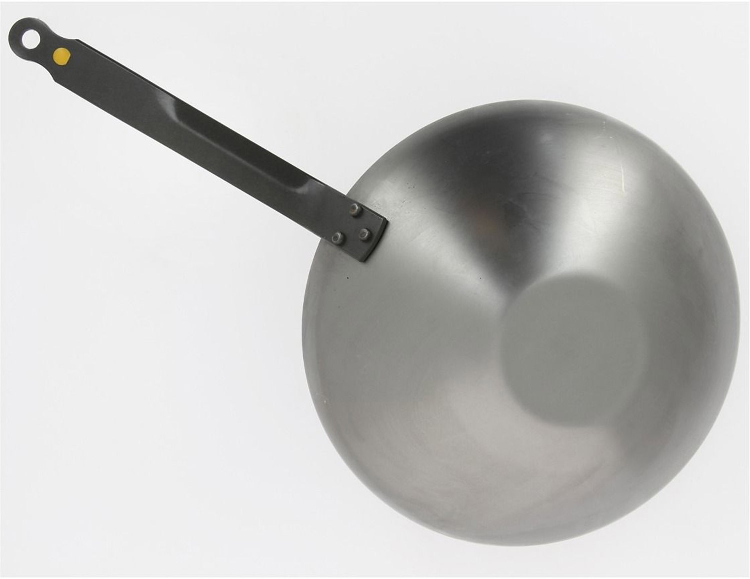Wok ze stali węglowej 24 cm de Buyer Mineral B. Wykonany ze stali węglowej pokrytej naturalnym woskiem pszczelim, bez dodatku substancji chemicznych i w przyjaznym dla środowiska procesie produkcyjnym. Stalowy wok szybko osiąga temperaturę co sprawia, że potrawy mogą być smażone krótko dla zachowania witamin i składników odżywczych. Idealny wok do zdrowego i szybkiego gotowania potraw, idealny do kuchni naturalnej i dietetycznej z niewielką zawartością tłuszczu. Nieodkształcalne, grube, bardzo stabilne dno. Doskonała karmelizacja potraw. Nagrzewa się szybko, równomierna dyfuzja ciepła, umożliwia reakcję Maillarda.