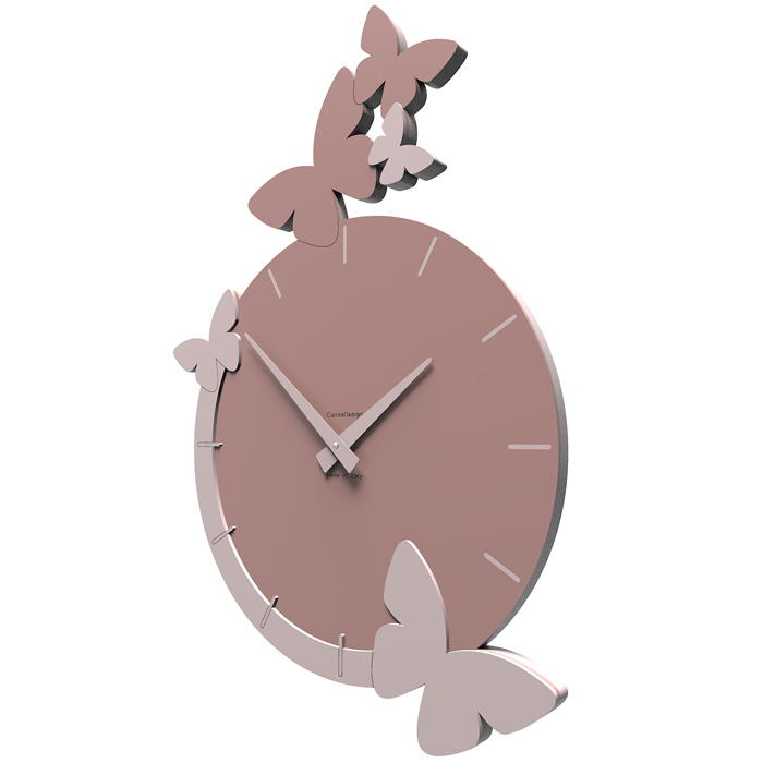Zegar ścienny Flight of the Butterflies, którego tarczę otacza kilka latających motyli. Został zaprojektowany i wyprodukowany we Włoszech w zakładach CalleaDesign. Przed opuszczeniem fabryki został dokładnie sprawdzony i przetestowany. Materiał, z którego został wykonany to włókno drzewne, które ma doskonałą jednorodność oraz jest łatwe w obróbce, która pozwana na uzyskanie wysokiej jakości wykończenia. Malowanie odbywa się farbami wodnymi z satynową powierzchnią. Mechanizm zegara wyprodukowany został w Niemczech, jest niezawodny i cichy, zasilany baterią AA. Wskazówki wykonane są z metalu. Do zegara dołączona jest bateria Duracell AA oraz zestaw montażowy.