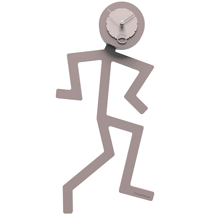 Kuchenny zegar ścienny Mino. Nietuzinkowy wygląd zegara przedstawia skradającą się postać człowieka, który zbliża się do lodówki w twojej kuchni. Został zaprojektowany i wyprodukowany we Włoszech w zakładach CalleaDesign. Przed opuszczeniem fabryki został dokładnie sprawdzony i przetestowany. Materiał, z którego został wykonany to włókno drzewne, które ma doskonałą jednorodność oraz jest łatwe w obróbce, która pozwana na uzyskanie wysokiej jakości wykończenia. Malowanie odbywa się farbami wodnymi z satynową powierzchnią. Mechanizm zegara wyprodukowany został w Niemczech, jest niezawodny i cichy, zasilany baterią AA. Wskazówki wykonane są z metalu. Do zegara dołączona jest bateria Duracell AA oraz zestaw montażowy.