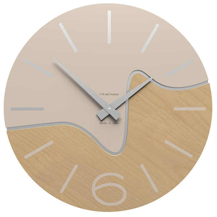 Elegancki zegar ścienny Oliver o klasycznym, okrągłym kształcie. Cyferblat zegara przedzielony został na dwie części delikatną sinusoidą, która oddziala powierzchnię wykonaną z włókna drzewnego od powierzchni drewnianej. Został zaprojektowany i wyprodukowany we Włoszech w zakładach CalleaDesign. Przed opuszczeniem fabryki został dokładnie sprawdzony i przetestowany. Materiał, z którego został wykonany to włókno drzewne, które ma doskonałą jednorodność oraz jest łatwe w obróbce, która pozwana na uzyskanie wysokiej jakości wykończenia. Malowanie odbywa się farbami wodnymi z satynową powierzchnią. Mechanizm zegara wyprodukowany został w Niemczech, jest niezawodny i cichy, zasilany baterią AA. Wskazówki wykonane są z metalu. Do zegara dołączona jest bateria Duracell AA oraz zestaw montażowy.